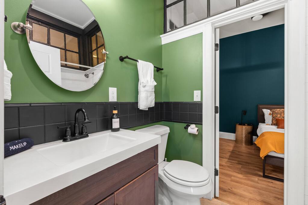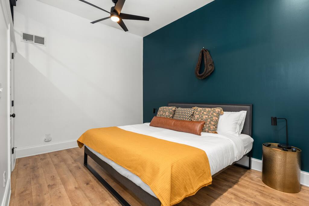 This amazing 1-bedroom, 1-bath home, 2-bed home offers a bold stay with amazing amenities. We have 1 King bed and 1 queen sofa bed. Each room is elegantly designed with high-end finishes. Each bedroom has its own TV for privacy. 2 TVs in the home! The courtyard is large and open. There is abundant seating around our two gas fire pits and a putting green for those who want to take a swing. If that's not your thing, you can grill and chill sitting at the picnic table featuring a solar-powered umbrella. This unit minutes away from distilleries, Nulu and Downtown and just steps away from the Bardstown Rd/Baxter Ave corridor where you'll find restaurants, shopping and entertainment