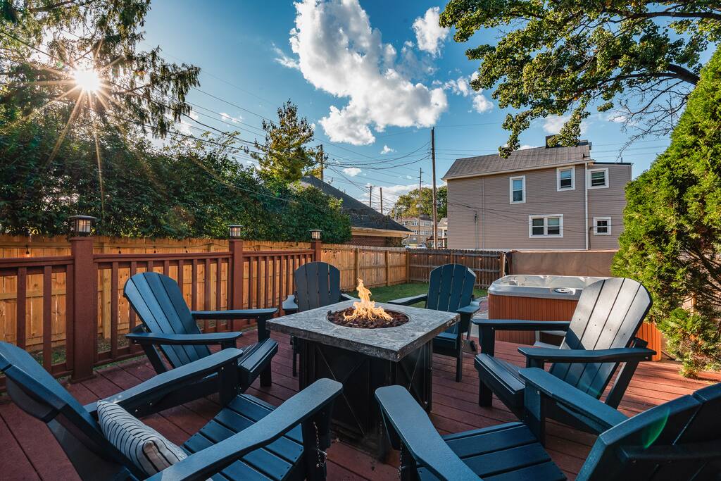 This amazing 3-story, 5-bedroom, 2.5-bath home offers a bold stay spread throughout 2074-sqft and amazing amenities. The home can handle large groups and families. We have 4 King and 1 Queen bed divided among the 1st and 2nd floors. Each room is elegantly designed with high-end finishes. The rear of the home is large and open. The sitting area around our natural gas fire pit has an abundance of laid back seating. You'll also find a hot tub for those who want to take a dip. If that's not your thing, you can grill and chill inside! Each bedroom has its own TV for privacy. 6 TVs in all throughout the home!