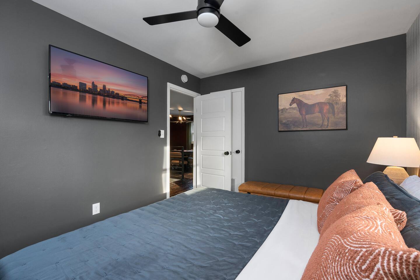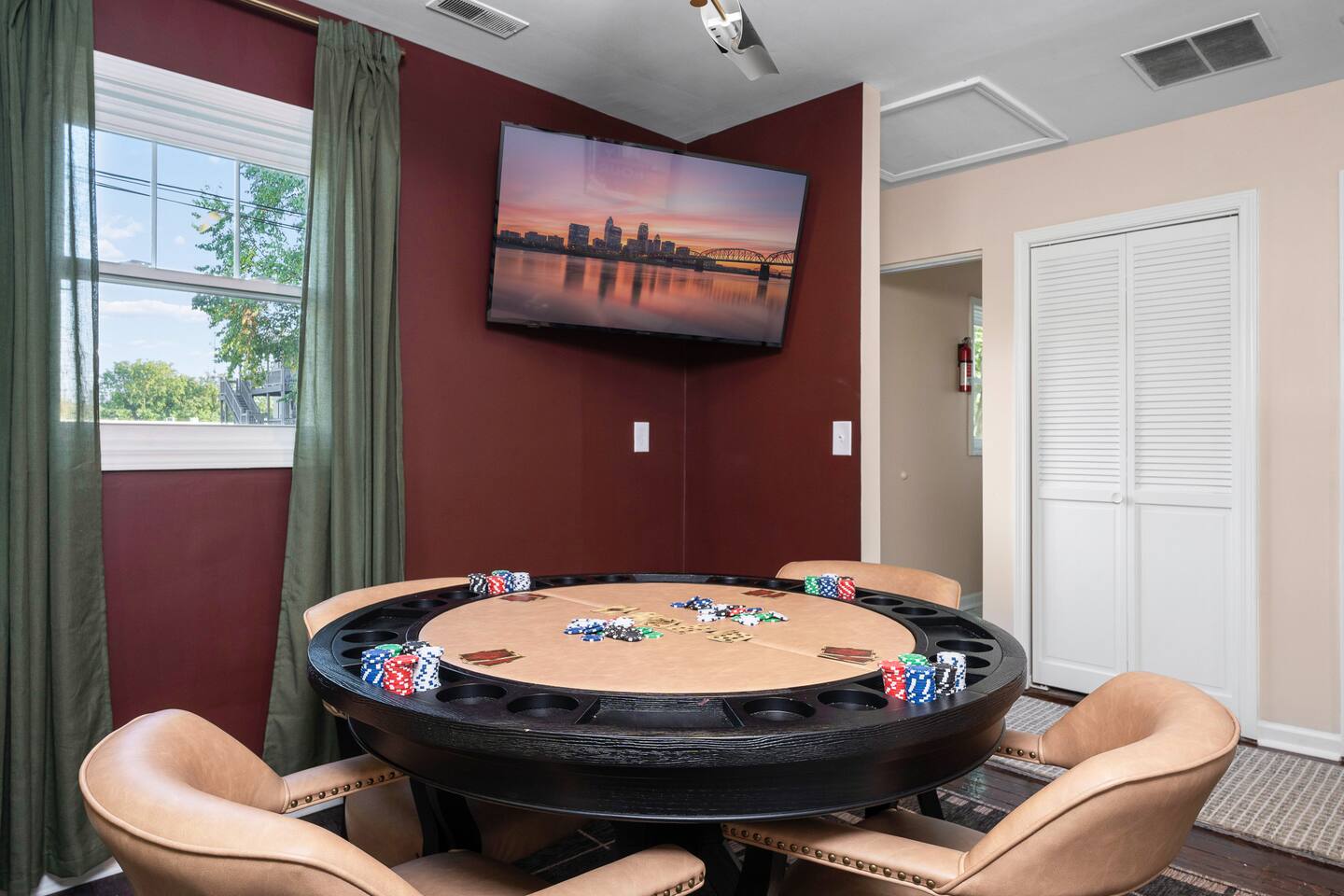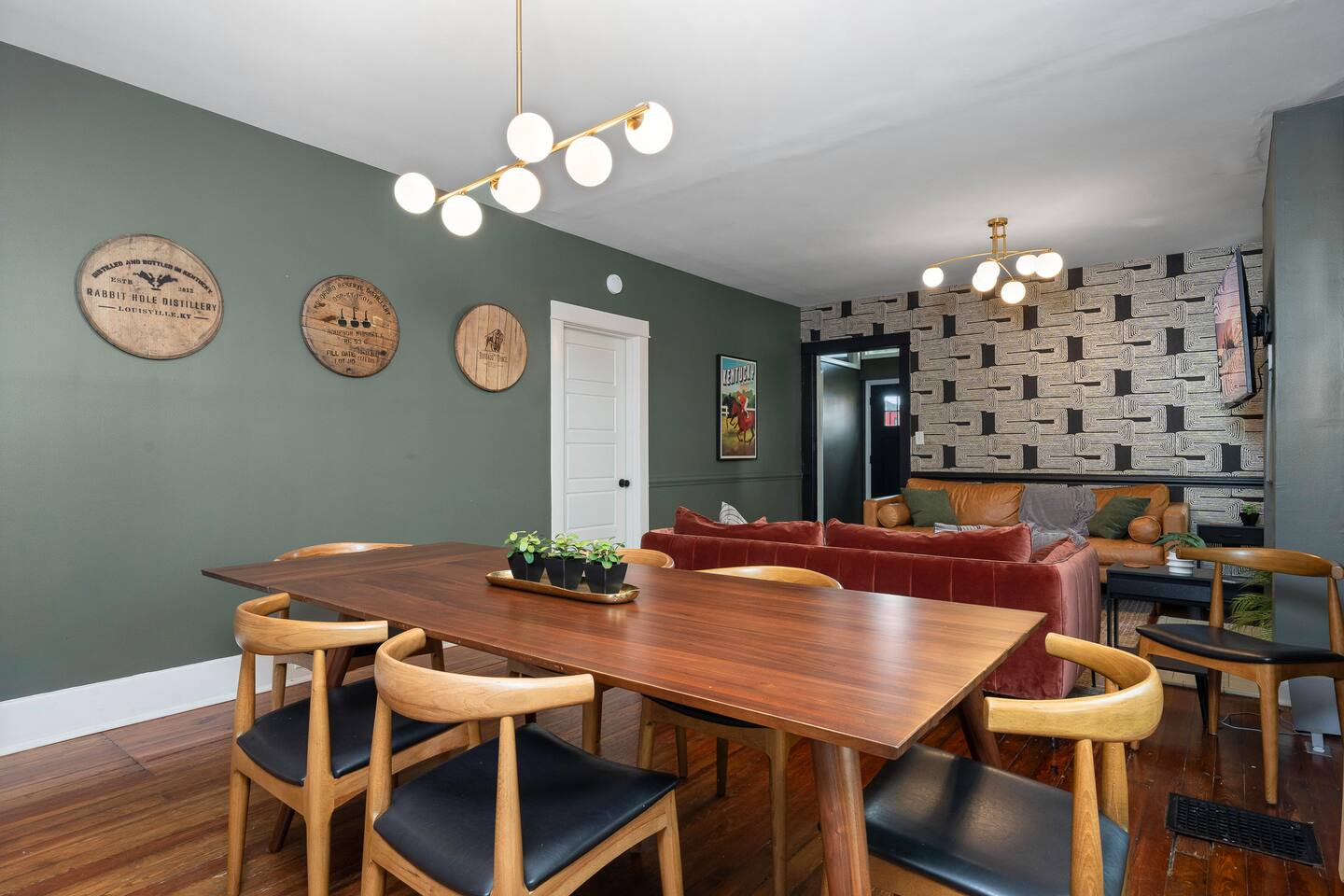 **Drivetimes** 0 min - Bardstown Rd 7 min - Rabbit Hole Distillery 8 min - Nulu 8 min - Copper & Kings Distillery 9 min - Angels Envy Distillery 10 min - Lynn Family Stadium 12 min - KY International Convention Center 13 min - Louisville Slugger Museum 13 min - KFC YUM! Center 13 min - Peerless Distillery 13 min - KY Expo Center 14 min - Airport 15 min - Churchill Downs KEY FEATURES: ☀ 5 spacious bedrooms with fun, unique designs; 5 king beds ☀ 2 full, modern bathrooms ☀ Beautiful kitchen with modern appliances & design ☀ Living room with tons of comfy seating ☀ Vibrant dining room that opens up to the main living area; great for entertaining! ☀ Elevated deck with comfortable outdoor seating ☀ Unbelievable turf backyard with a hot tub, putting green, grill, picnic table with an umbrella and a large seating area surrounding the fire pit ☀ Historic neighborhood in the middle of Louisville's entertainment and event centers ☆☆ BEDROOMS ☆☆ These 5 bedrooms will BLOW YOU AWAY! Each have their own smart TV. We have 5 king beds. ☆☆ BATHROOMS ☆☆ There are 2 full bathrooms throughout this home. Both full baths include walk-in showers. ☆☆ KITCHEN & DINING ☆☆ The kitchen is bright & open with brand new stainless steel appliances. With lots of counter space, bar top seating. It's a great kitchen for entertaining! Just one room over is the bright and welcoming dining room. The dining room seats 10 with an addition 4 seats located at the gaming table. ☆☆ LIVING ROOM ☆☆ As you walk into the home, you're greeted with the big, open living room, which has tons of comfy seating and a luxurious design! It's a great place to relax after tours during the day or before heading out for the night. ☆☆ OUTDOOR SPACE ☆☆ This backyard is everything you could ask for, and more! ☀ Hot tub ☀ Fire pit (gas burning) ☀ BBQ grill ☀ Elevated deck ☀ Putting green ☀ Picnic table with LED umbrella ☀ Outdoor lounge seating There is so much to do here, that all of your friends & family will be thoroughly entertained throughout your entire stay. Book your stay with us today and you will NOT be disappointed. Get ready for a vacation you will never forget! ★☆ Book Now & Let Us Take Care Of You In Louisville! ☆★