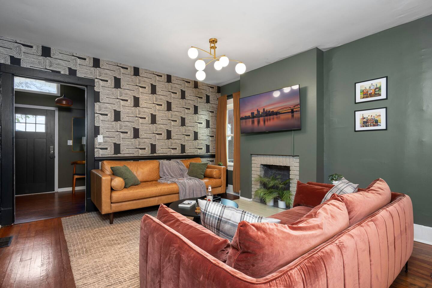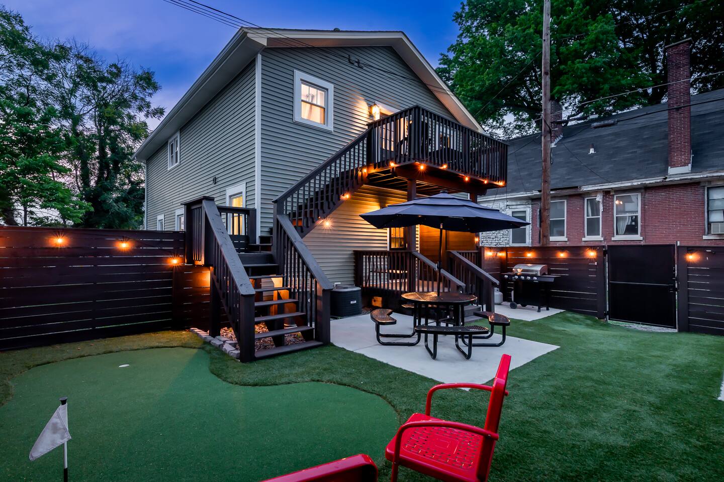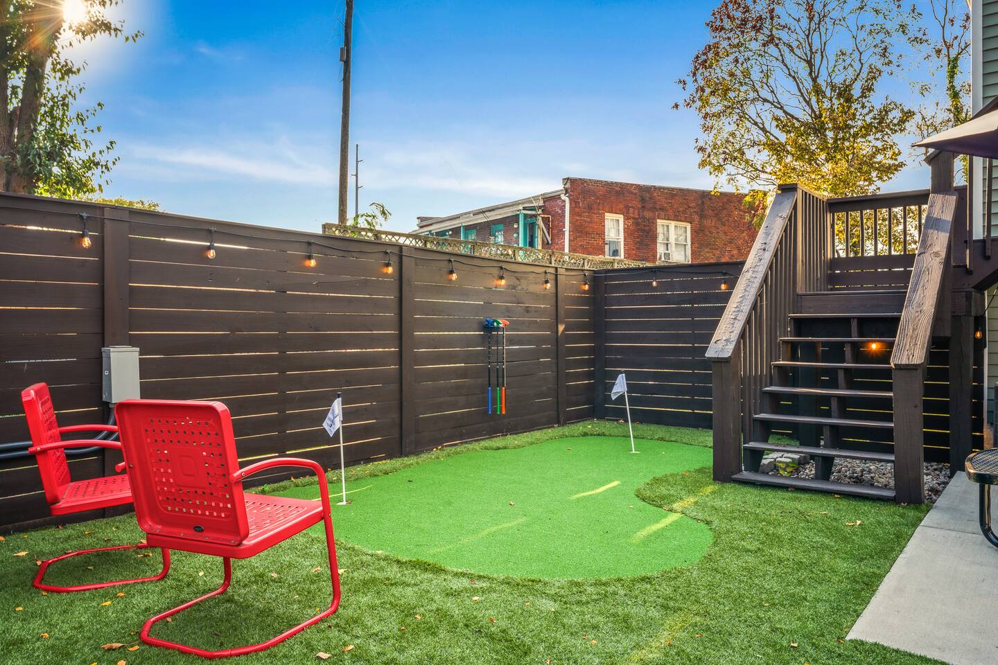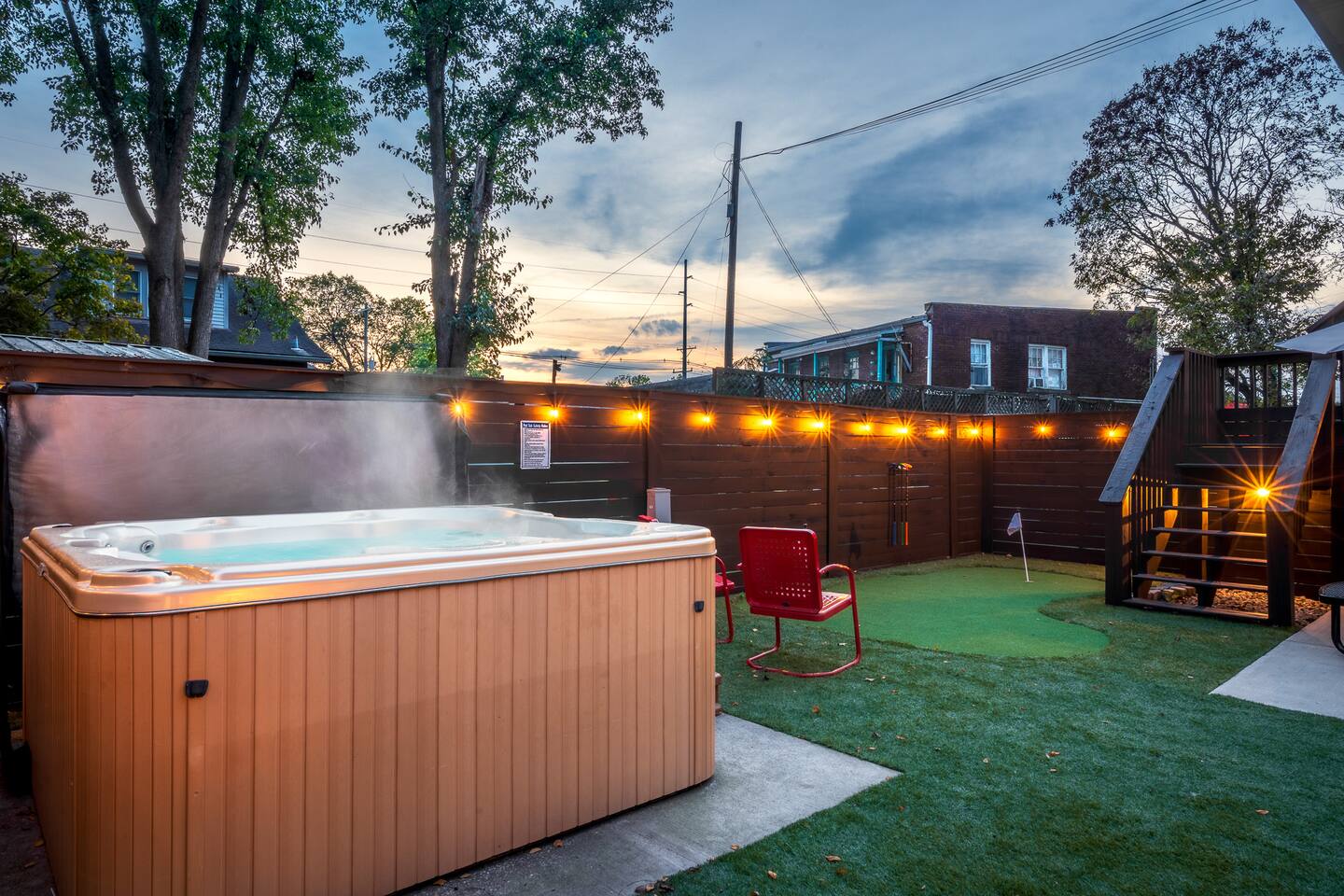 Feel right at home in this newly designed Louisville getaway! Class meets comfort with roomy spaces and king beds for all. The yard has a hot tub, putting green, fire pit, games and an elevated deck off the upstairs. Located a 1/2 block off Bardstown Rd in Louisville's historic Highland's neighborhood you'll find restaurants, bars and shops very walkable—it’s the perfect home base for your stay. Centrally located, stylish, and welcoming, it’s everything you need for comfort and convenience!