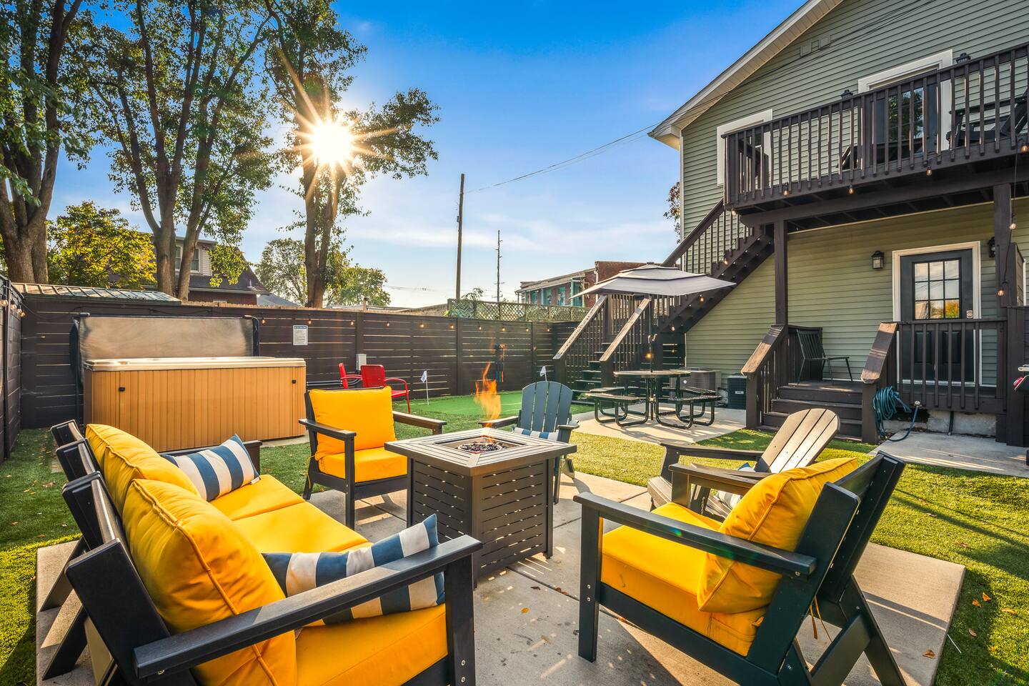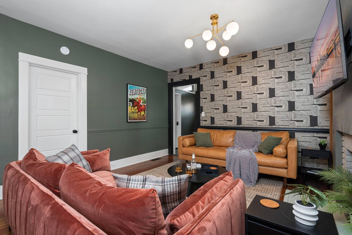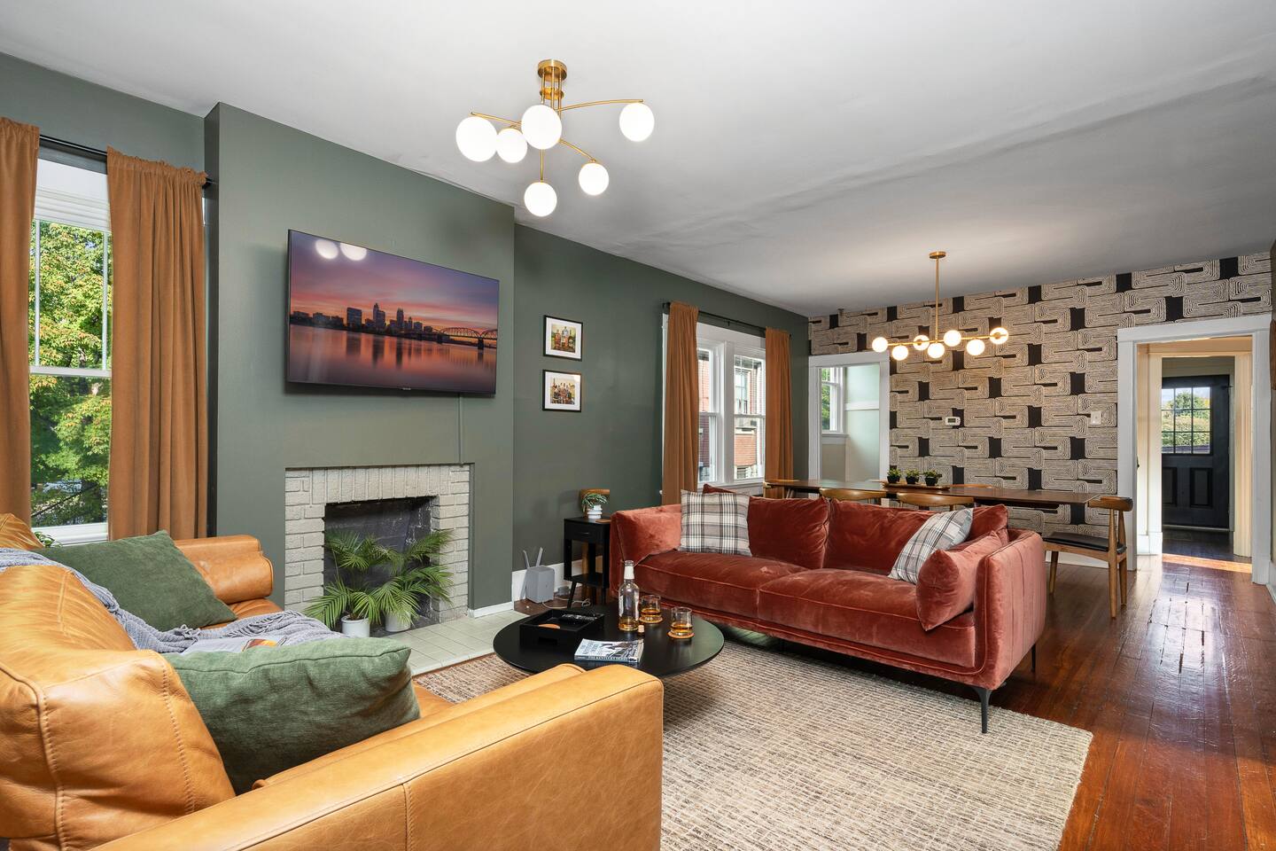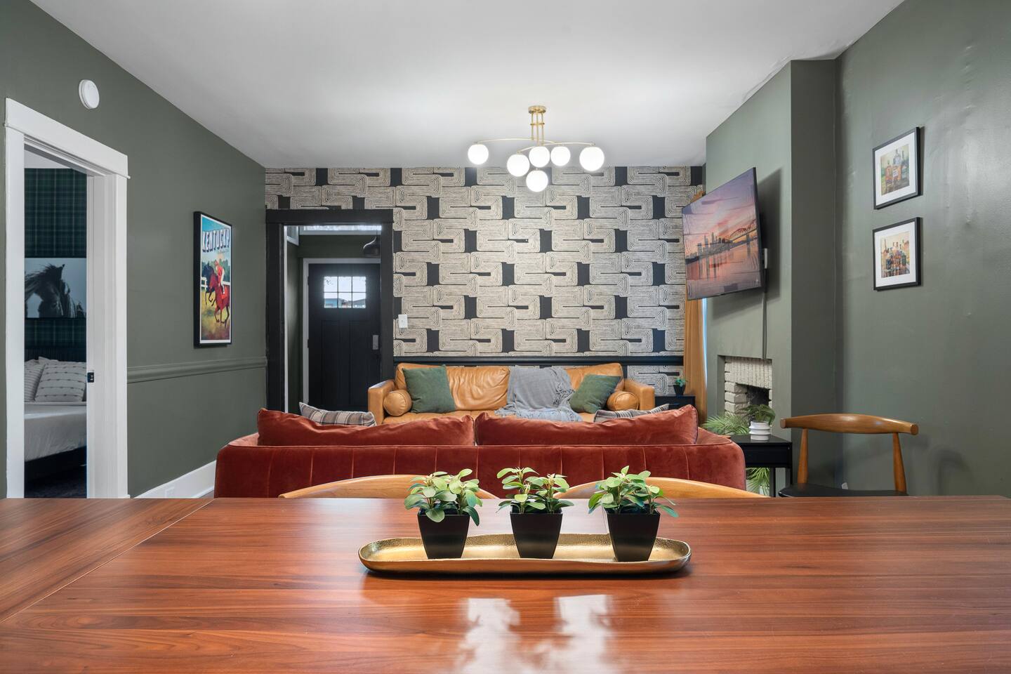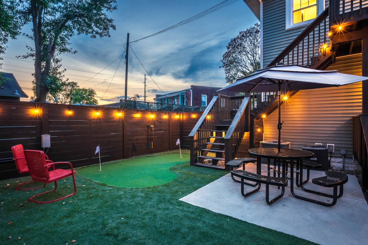 Feel right at home in this newly designed Louisville getaway! Class meets comfort with roomy spaces and king beds for all. The yard has a hot tub, putting green, fire pit, games and an elevated deck off the upstairs. Located a 1/2 block off Bardstown Rd in Louisville's historic Highland's neighborhood you'll find restaurants, bars and shops very walkable—it’s the perfect home base for your stay. Centrally located, stylish, and welcoming, it’s everything you need for comfort and convenience!