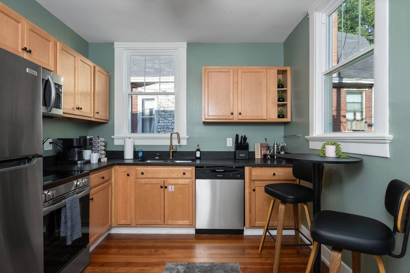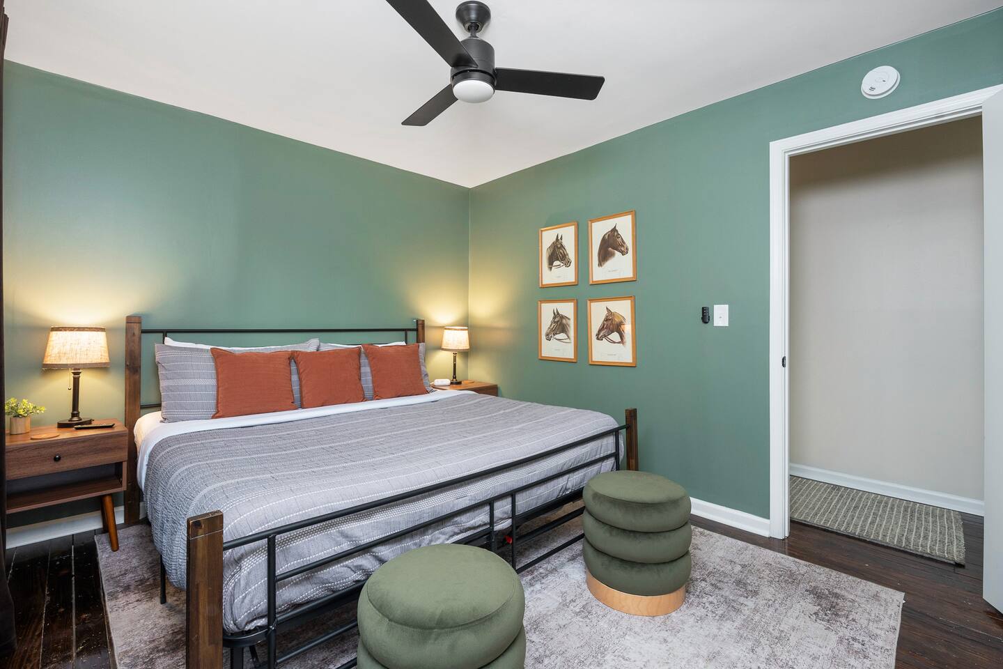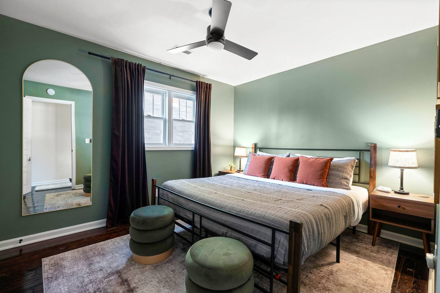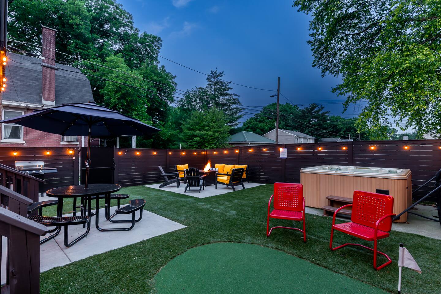 Feel right at home in this newly designed Louisville getaway! Class meets comfort with roomy spaces and king beds for all. The yard has a hot tub, putting green, fire pit, games and an elevated deck off the upstairs. Located a 1/2 block off Bardstown Rd in Louisville's historic Highland's neighborhood you'll find restaurants, bars and shops very walkable—it’s the perfect home base for your stay. Centrally located, stylish, and welcoming, it’s everything you need for comfort and convenience!