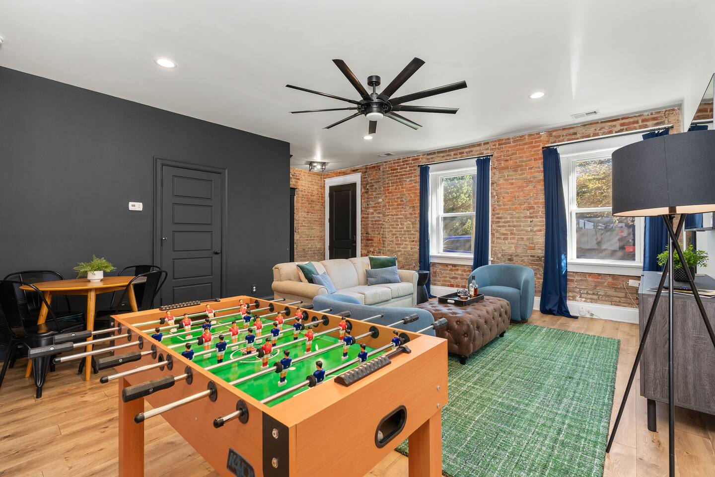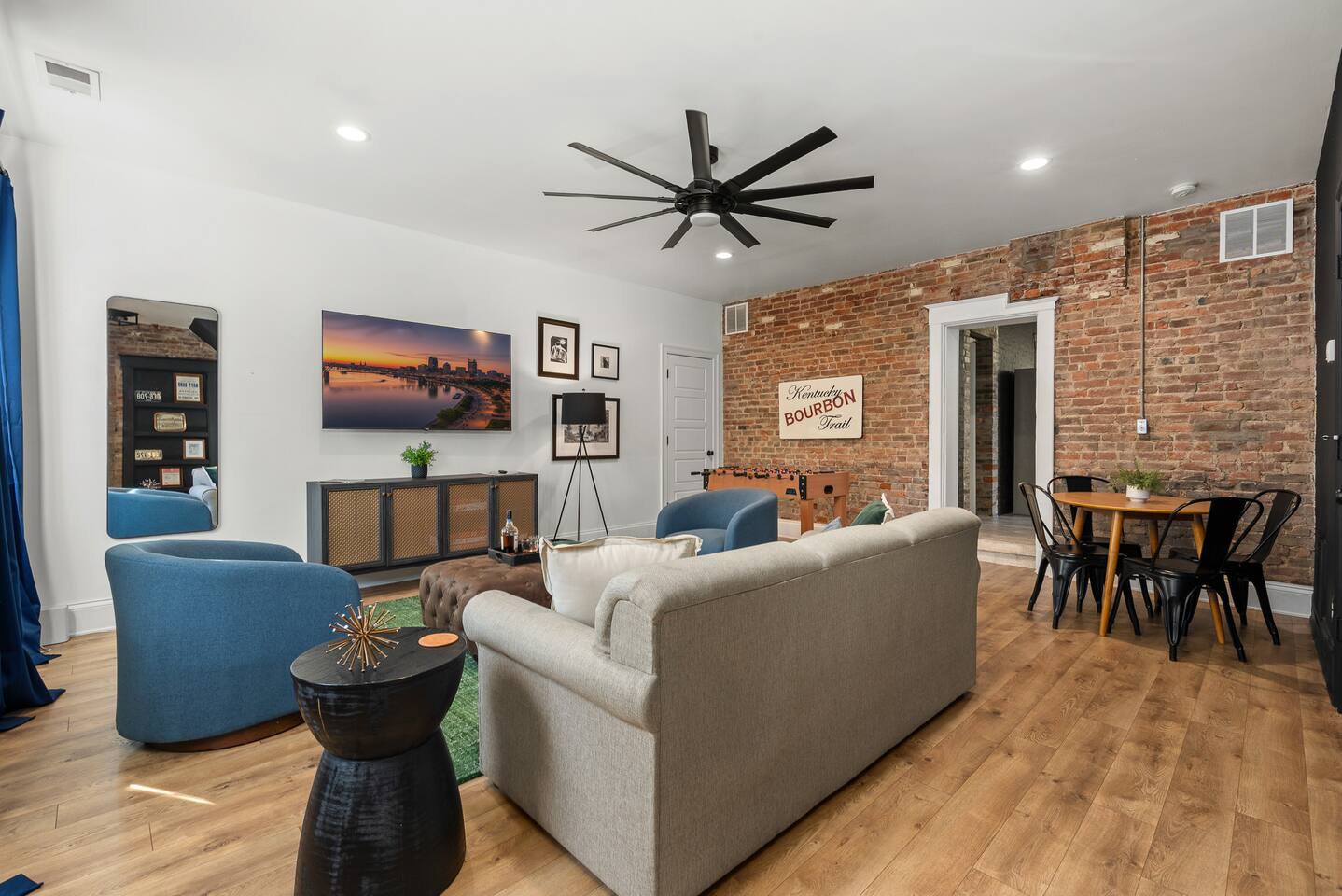 **Drivetimes** 0 min - Bardstown Rd/Baxter Ave Corridor 3 min - Rabbit Hole Distillery 4 min - Nulu 5 min - Copper & Kings Distillery 6 min - Angels Envy Distillery 6 min - Lynn Family Stadium 9 min - KY International Convention Center 9 min - KFC YUM! Center 10 min - Peerless Distillery 10 min - KY Expo Center 12 min - Louisville Slugger Museum 13 min - Airport 14 min - Churchill Downs KEY FEATURES: ☀ 1 bedroom with a fun, unique design; 1 king & 1 queen sofa bed ☀ 1 full, modern bathroom. ☀ Beautiful kitchen with modern appliances & design ☀ Living room/dining room with tons of comfy seating and a foosball table ☀ Unbelievable shared turf courtyard with a mini golf, grills, a picnic table with an umbrella and a large seating areas surrounding the fire pits ☀ Historic neighborhood in the middle of Louisville's entertainment and event centers ☆☆ BEDROOMS ☆☆ This 1 bedroom will BLOW YOU AWAY! There is a king bed located in the large bedroom w plenty of closet space and direct access to the full bath. ☆☆ BATHROOMS ☆☆ There is a full bathroom in the home with a shower/tub combo. ☆☆ KITCHEN & DINING ☆☆ The kitchen is bright & open. We have new stainless steel appliances with lots of counter space. It's a great kitchen for entertaining. ☆☆ LIVING & DINING ROOM ☆☆ We have a big, open living room, which has tons of comfy seating and a luxurious design! Here you'll find the games and wall mounted TV. There is a table for four along with a foosball table. The couch is a sofa bed hiding a queen bed. This living room is a great place to relax after tours during the day or before heading out for the night. ☆☆ OUTDOOR SPACE ☆☆ This shared courtyard is everything you could ask for, and more! ☀ Two fire pits (gas burning) ☀ Two BBQ grills ☀ Putting green ☀ Picnic table with LED umbrella ☀ Outdoor lounge seating There is so much to do here, that all of your friends & family will be thoroughly entertained throughout your entire stay. Book your stay with us today and you will NOT be disappointed. Get ready for a vacation you will never forget! ★☆ Book Now & Let Us Take Care Of You In Louisville! ☆★