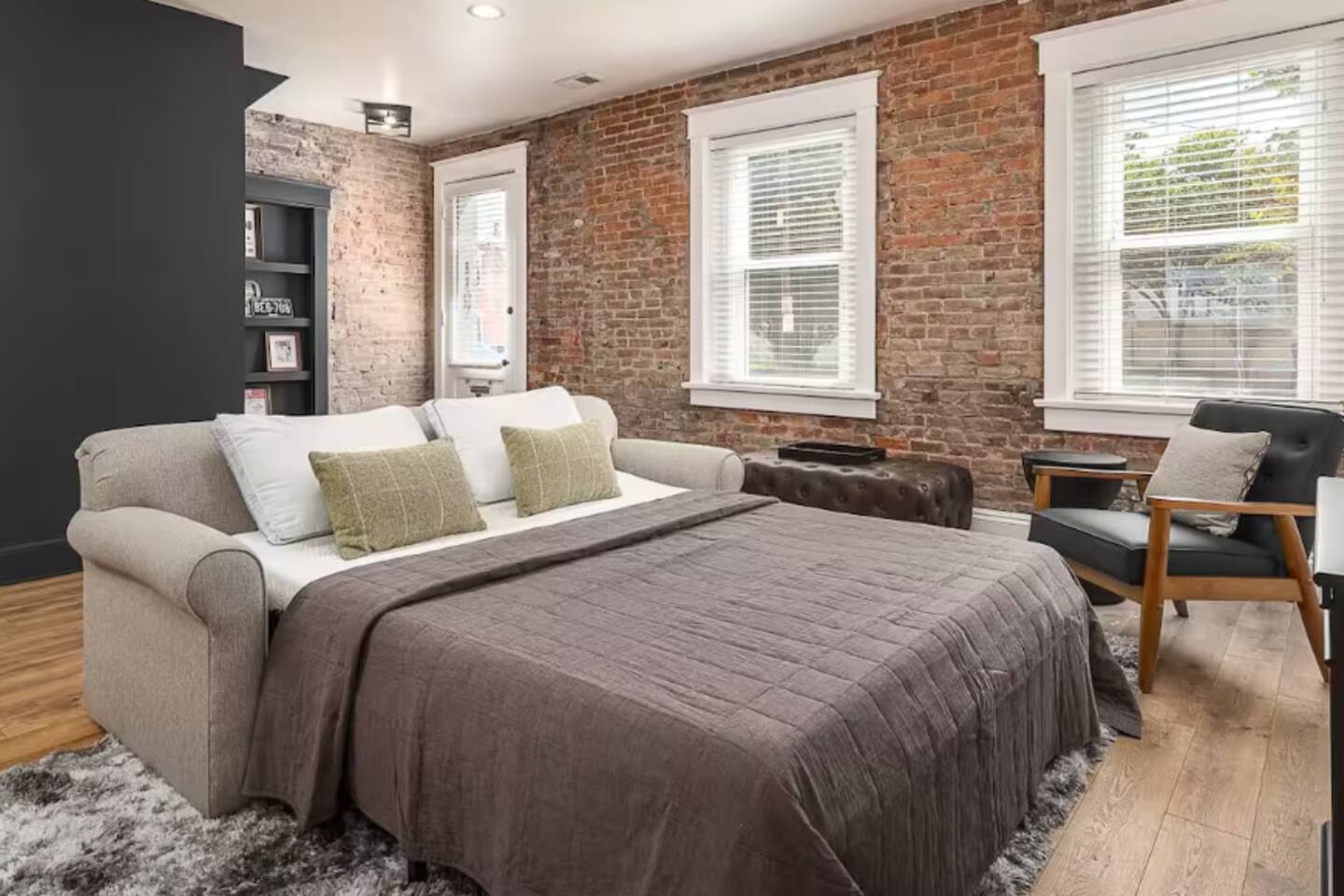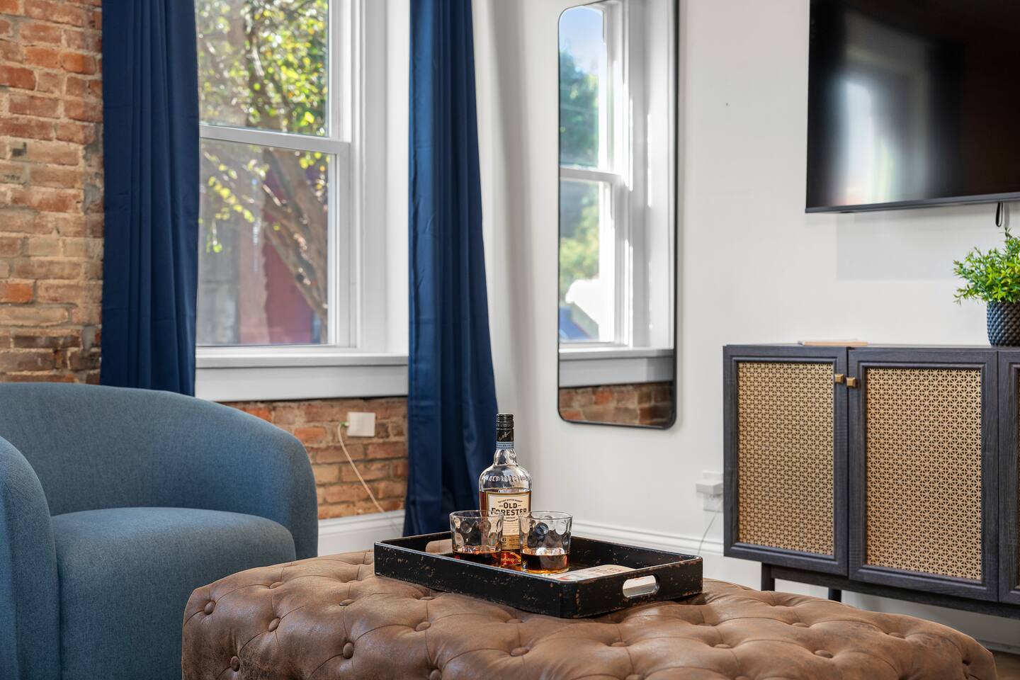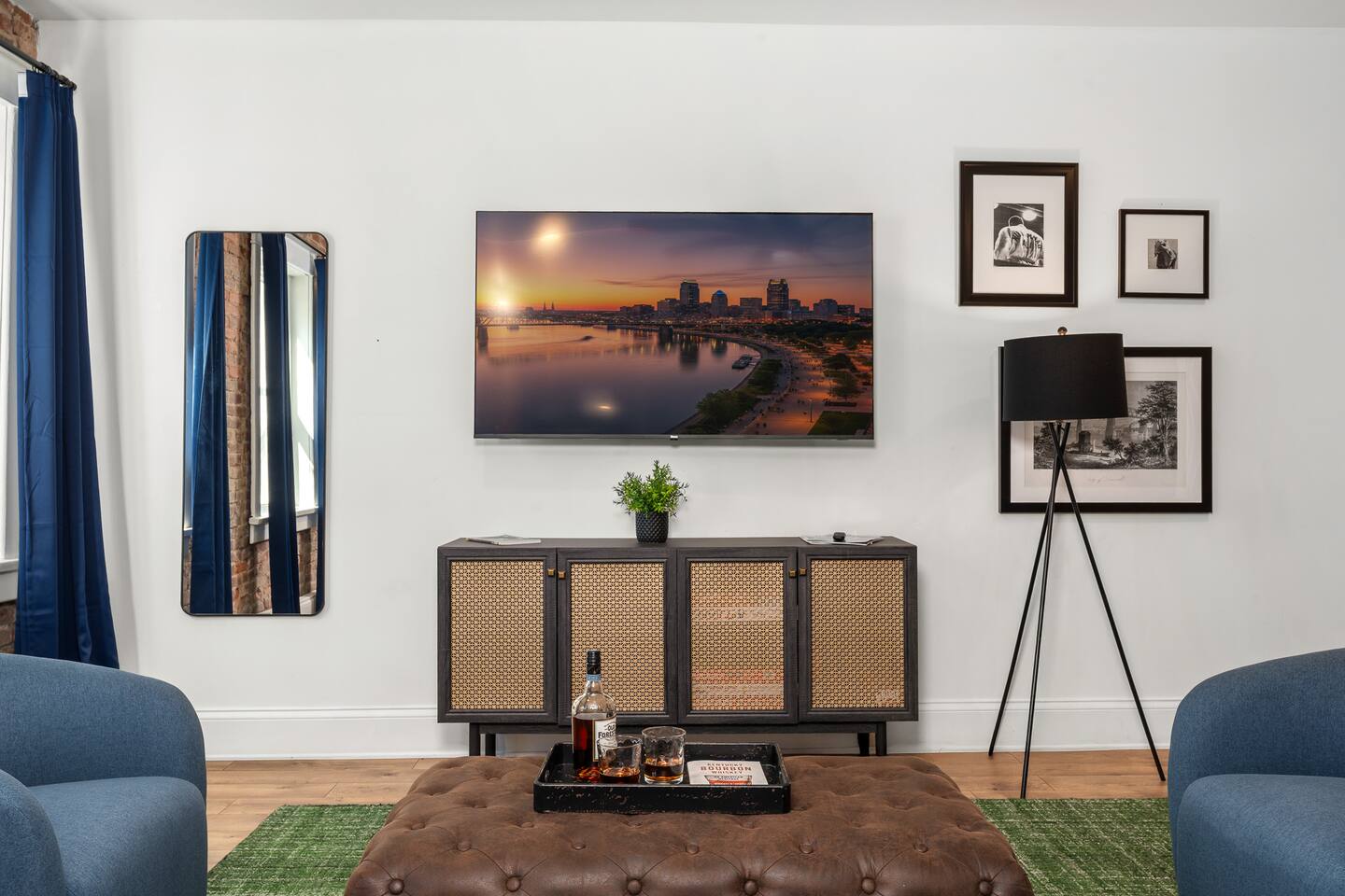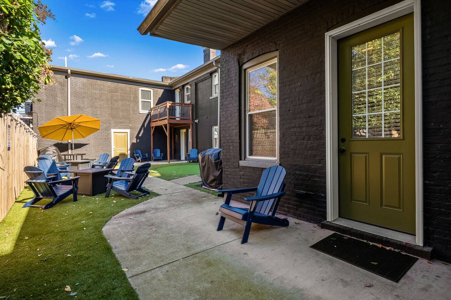 This amazing 1-bedroom, 1-bath home, 2-bed home offers a bold stay with amazing amenities. We have 1 King bed and 1 queen sofa bed. Each room is elegantly designed with high-end finishes. Each bedroom has its own TV for privacy. 2 TVs in the home! The courtyard is large and open. There is abundant seating around our two gas fire pits and a putting green for those who want to take a swing. If that's not your thing, you can grill and chill sitting at the picnic table featuring a solar-powered umbrella. This unit minutes away from distilleries, Nulu and Downtown and just steps away from the Bardstown Rd/Baxter Ave corridor where you'll find restaurants, shopping and entertainment