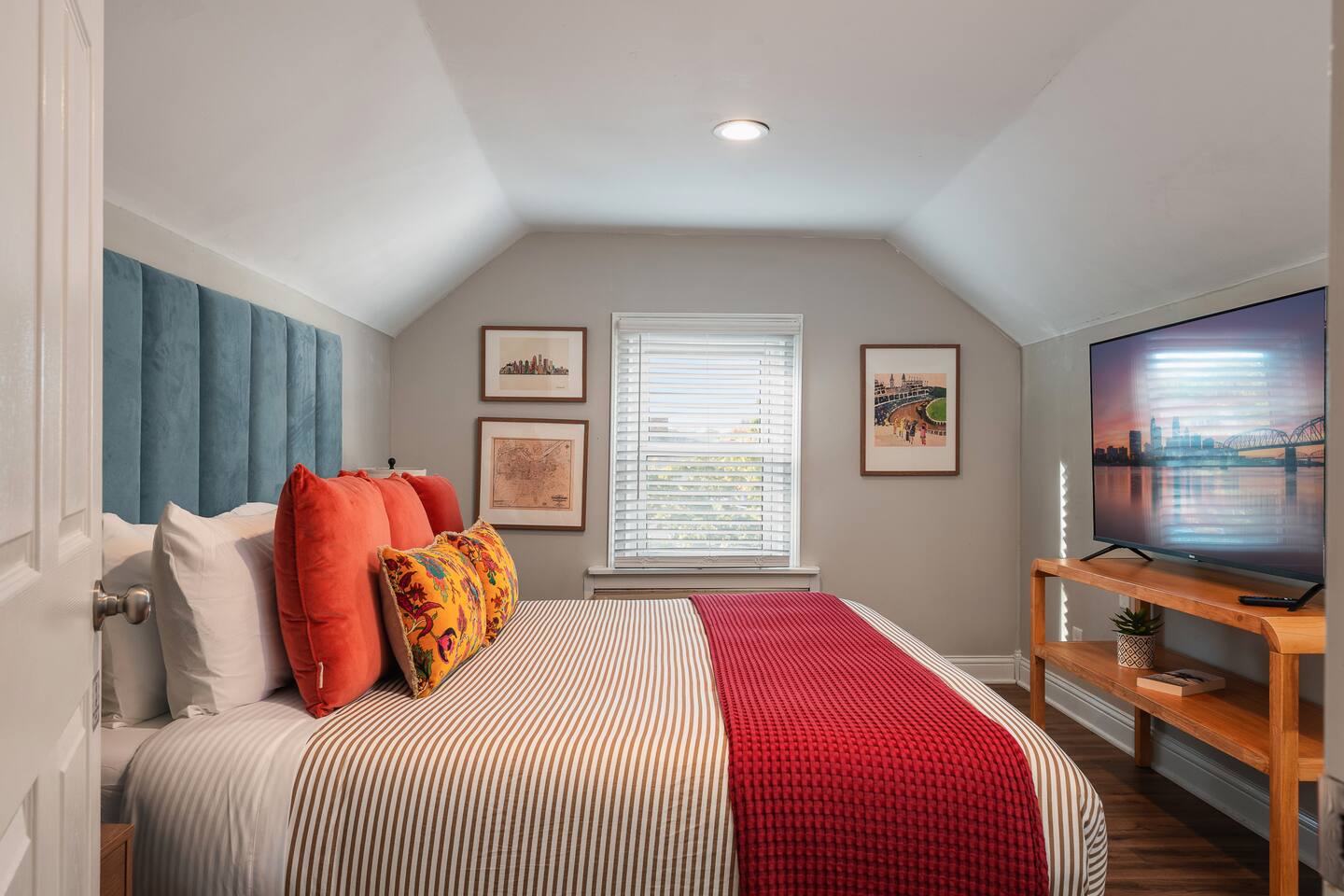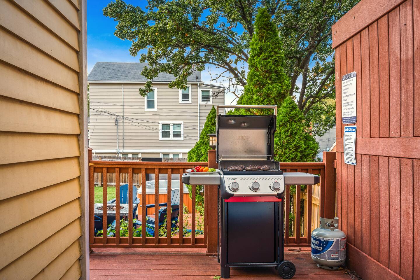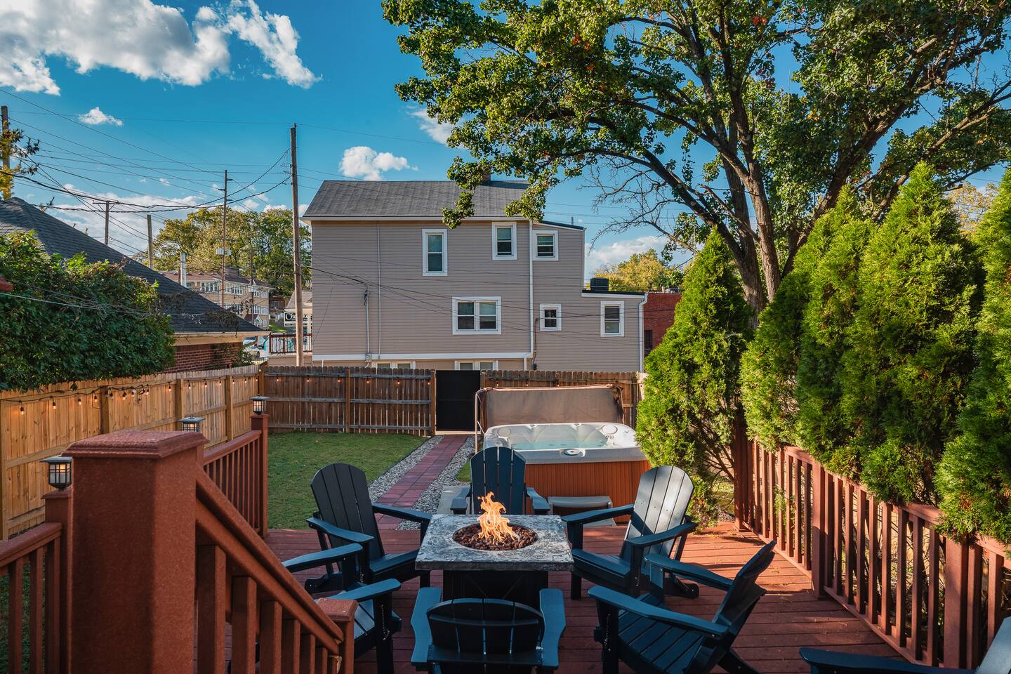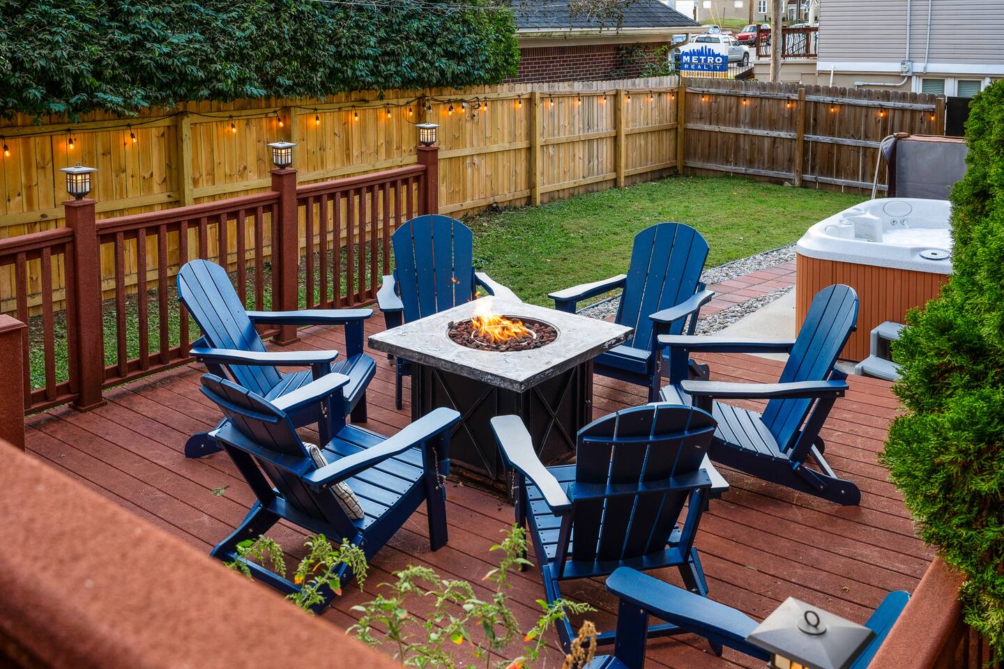 This amazing 3-story, 5-bedroom, 2.5-bath home offers a bold stay spread throughout 2074-sqft and amazing amenities. The home can handle large groups and families. We have 4 King and 1 Queen bed divided among the 1st and 2nd floors. Each room is elegantly designed with high-end finishes. The rear of the home is large and open. The sitting area around our natural gas fire pit has an abundance of laid back seating. You'll also find a hot tub for those who want to take a dip. If that's not your thing, you can grill and chill inside! Each bedroom has its own TV for privacy. 6 TVs in all throughout the home!