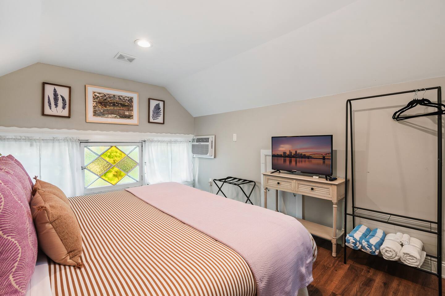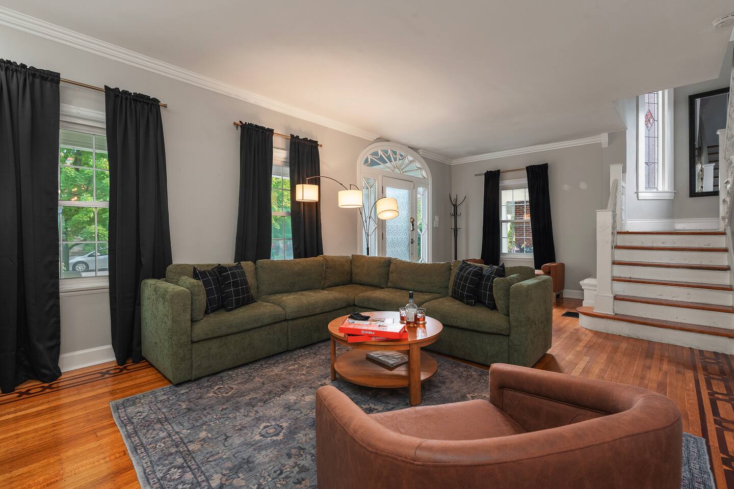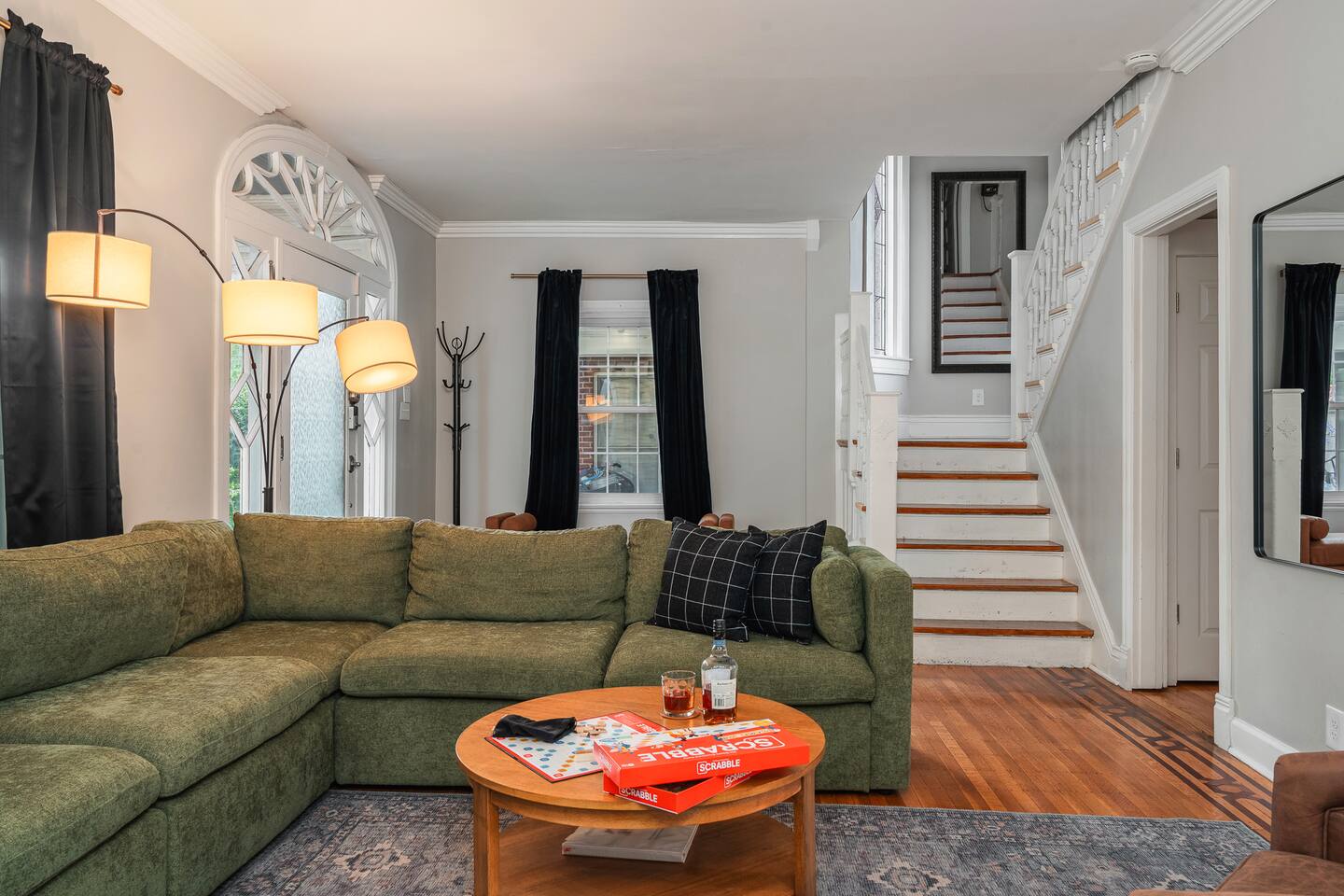 Your Highlands getaway awaits! Enjoy three stories of stylish comfort in this centrally located home. Gather in roomy living spaces, cook and share meals together, then step out to explore Bardstown Road’s amazing restaurants, bars, and shops just a short walk away. Afterward, unwind in the hot tub, toast s’mores by the fire pit, or play games on the deck—comfort, connection, and convenience all in one perfect spot!