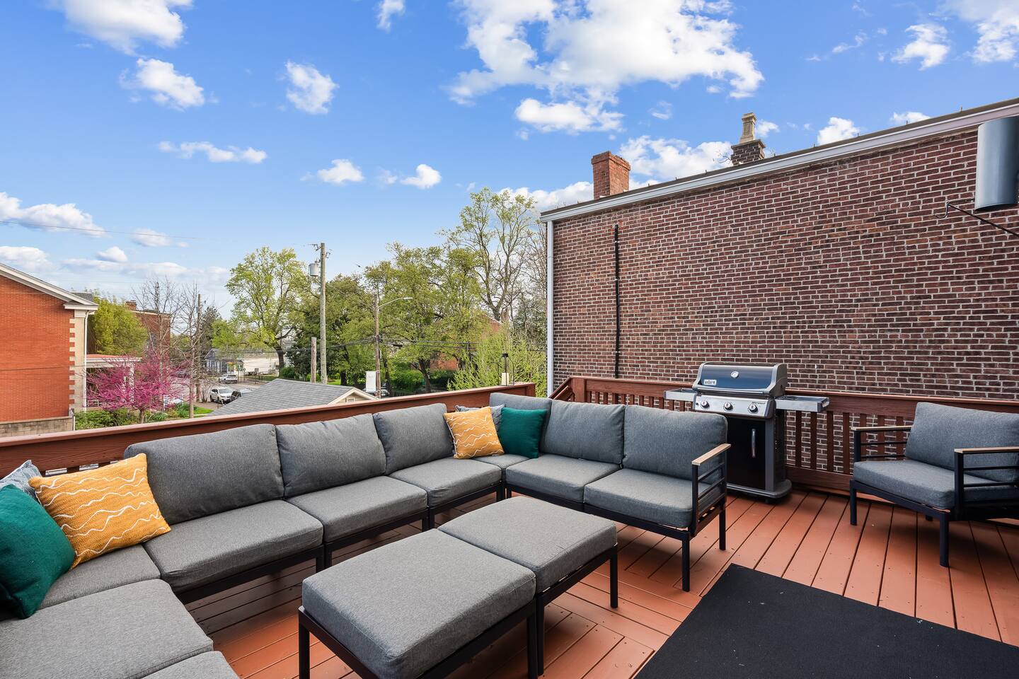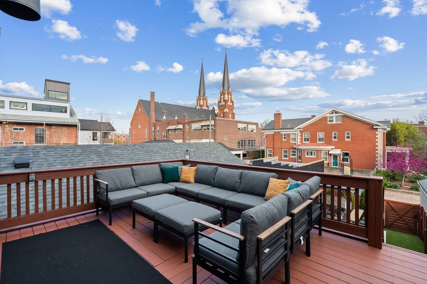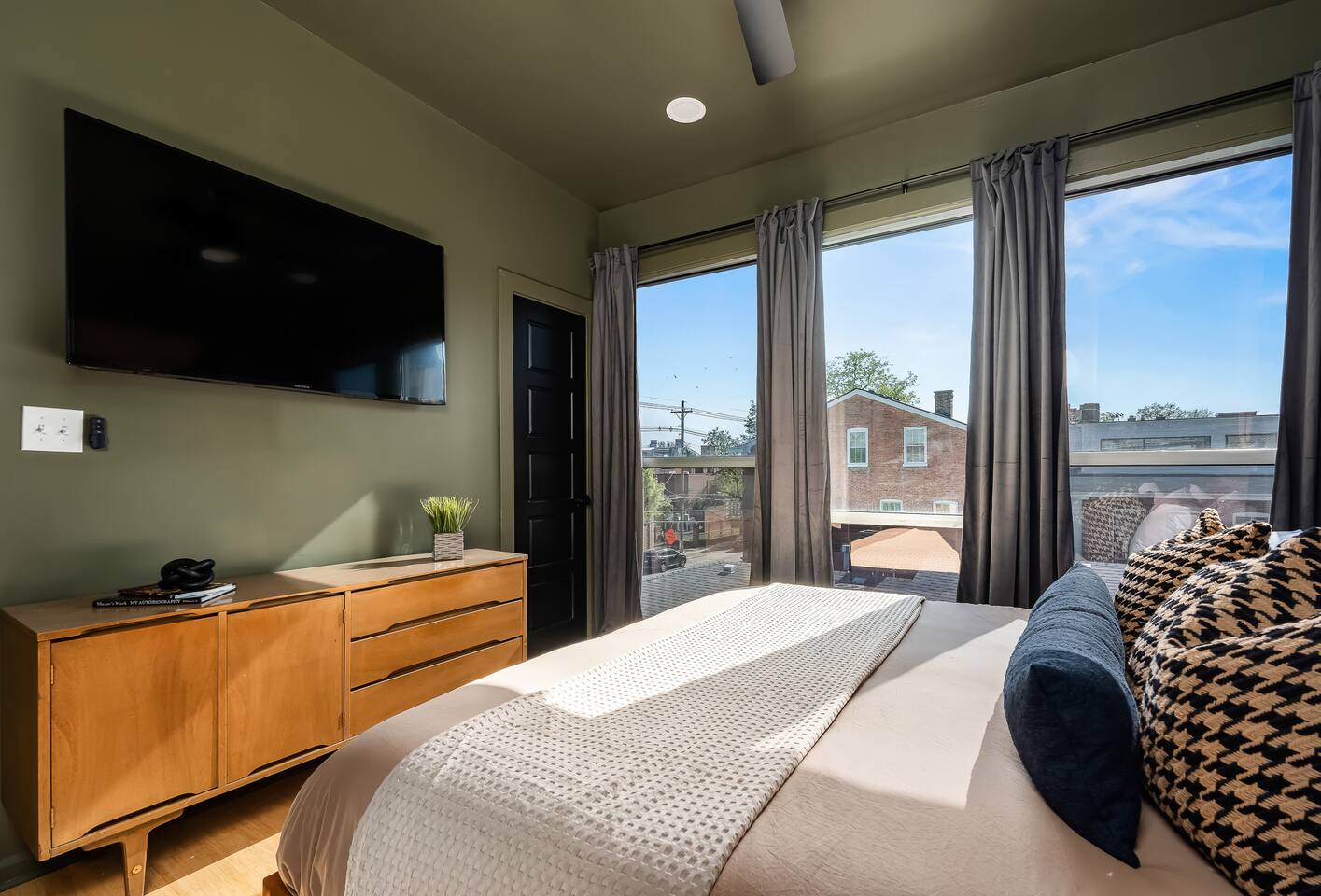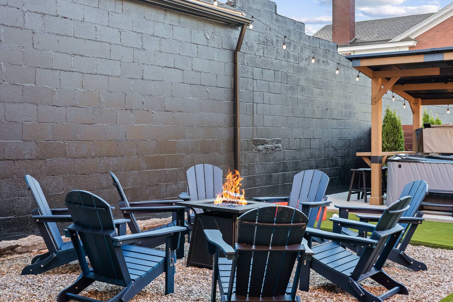 This amazing 3-story, 6-bedroom, 4.5- bath home offers a bold stay spread throughout 3000sqft and amazing amenities. The home can handle large groups and families. We have 3 King, 2 Queen and 2 Full sized beds divided among the 1st and 3rd floors. Each room is elegantly designed with high-end finishes. The 3rd floor bedrooms all feature walls of windows facing west towards downtown. The full bathrooms have been completely reconstructed and feature high end finishes. The rear of the home is large and open. The expansive deck with its outdoor couch and Weber grill overlooks the expansive yard. There you'll find a covered hottub with bench seating around it where those who want to take a dip can talk to those who want to stay dry. Not far away is the fire pit with Adirondack chairs and a table where you can challenge your friends to bourbon-pong. Inside each bedroom has its own TV for privacy. On the 2nd floor the living room has its own 65" tv waiting for you while right next to it is the kitchen where you'll find 4 mounted TVs where you can watch multiple channels. 11 TVs in all throughout the home!