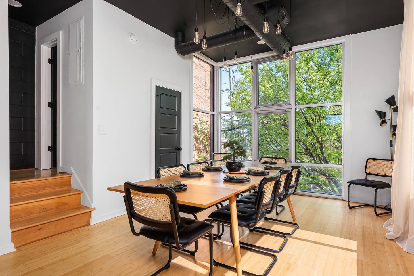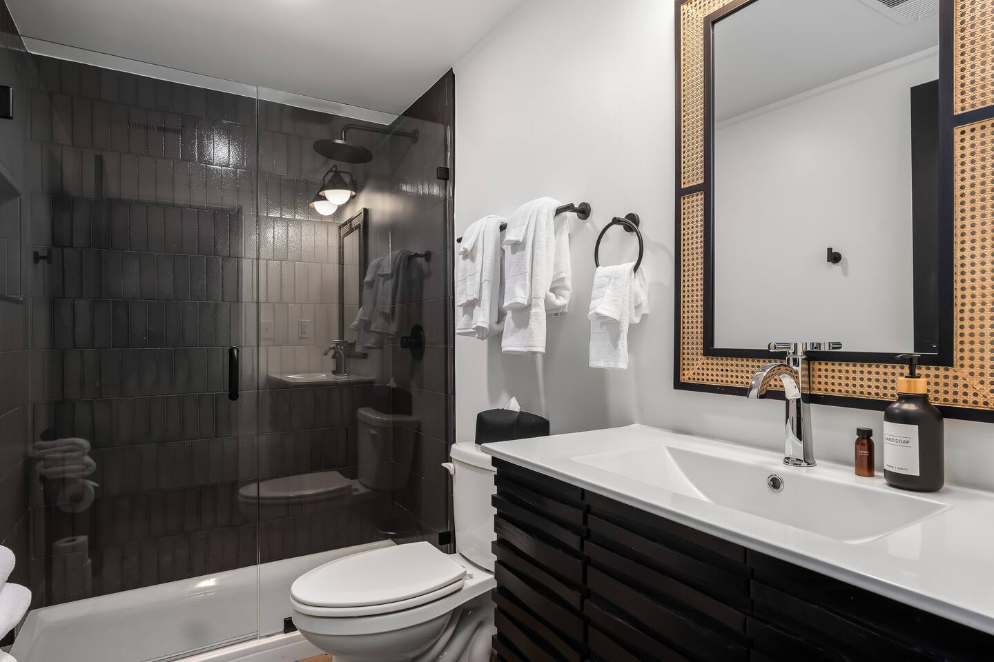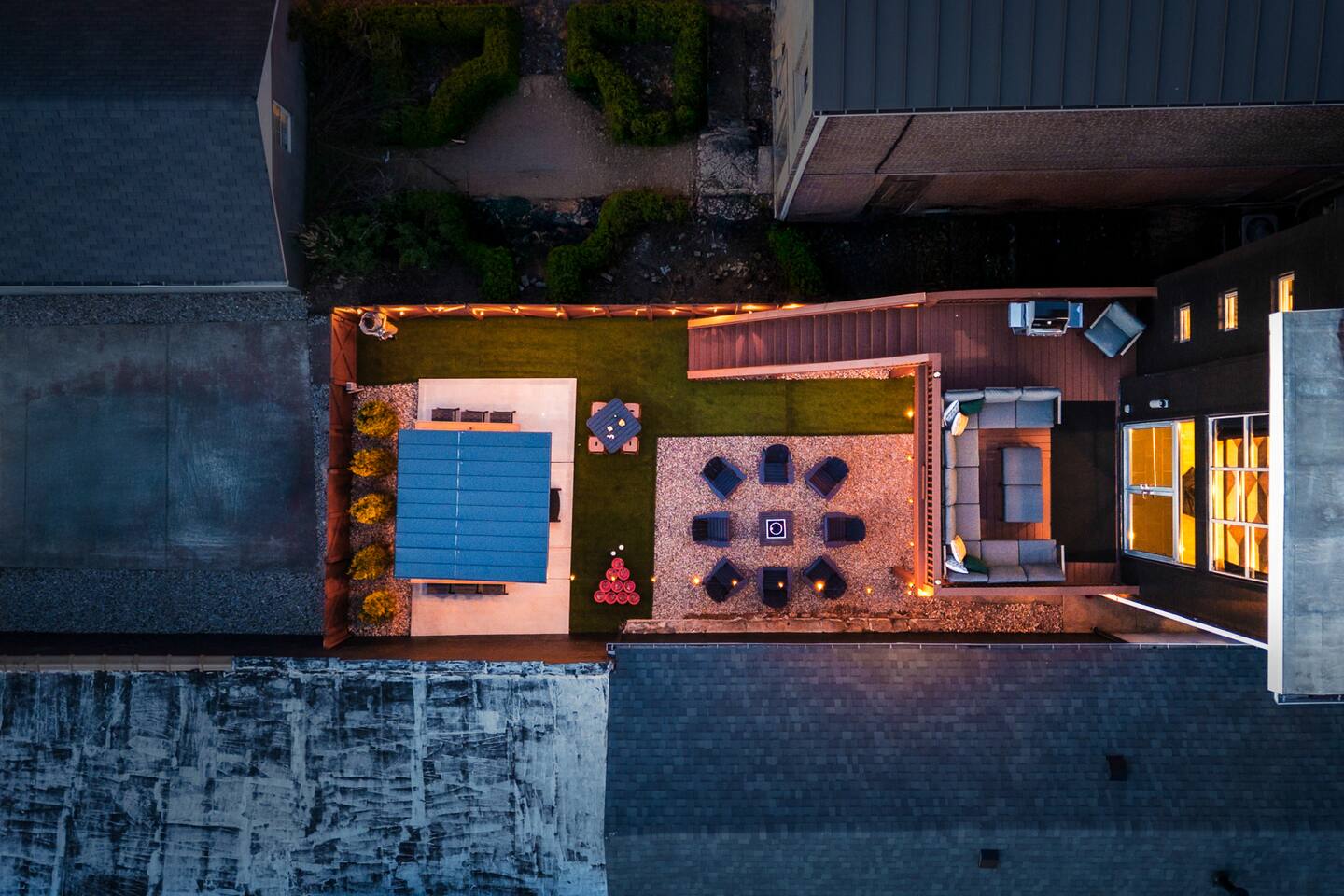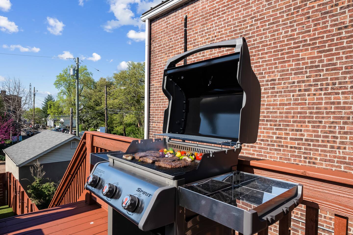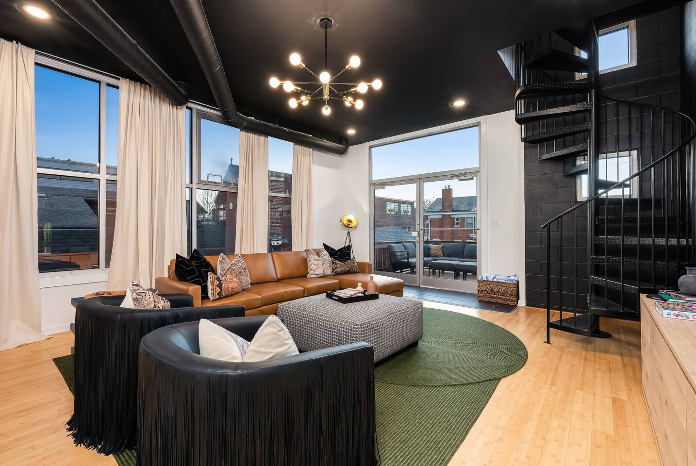 This amazing 3-story, 6-bedroom, 4.5- bath home offers a bold stay spread throughout 3000sqft and amazing amenities. The home can handle large groups and families. We have 3 King, 2 Queen and 2 Full sized beds divided among the 1st and 3rd floors. Each room is elegantly designed with high-end finishes. The 3rd floor bedrooms all feature walls of windows facing west towards downtown. The full bathrooms have been completely reconstructed and feature high end finishes. The rear of the home is large and open. The expansive deck with its outdoor couch and Weber grill overlooks the expansive yard. There you'll find a covered hottub with bench seating around it where those who want to take a dip can talk to those who want to stay dry. Not far away is the fire pit with Adirondack chairs and a table where you can challenge your friends to bourbon-pong. Inside each bedroom has its own TV for privacy. On the 2nd floor the living room has its own 65" tv waiting for you while right next to it is the kitchen where you'll find 4 mounted TVs where you can watch multiple channels. 11 TVs in all throughout the home!
