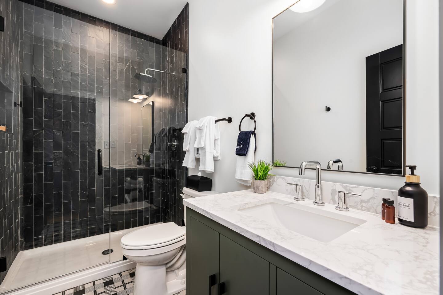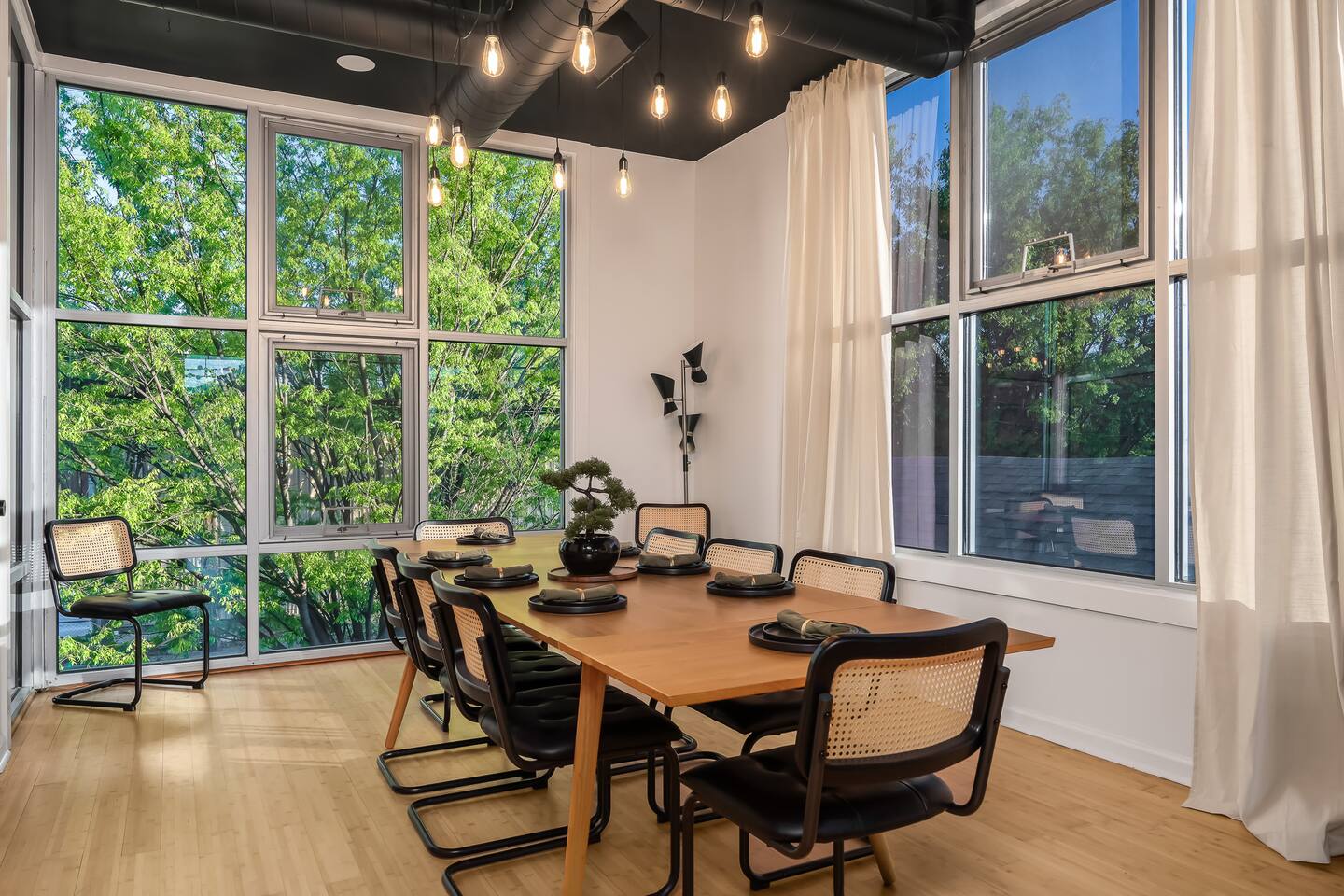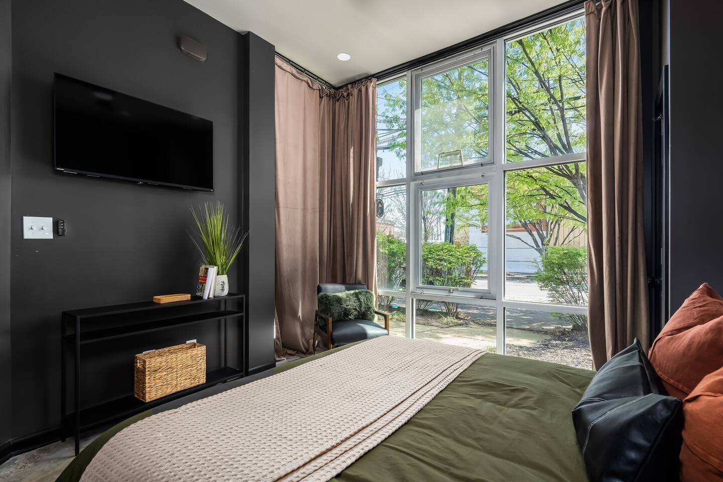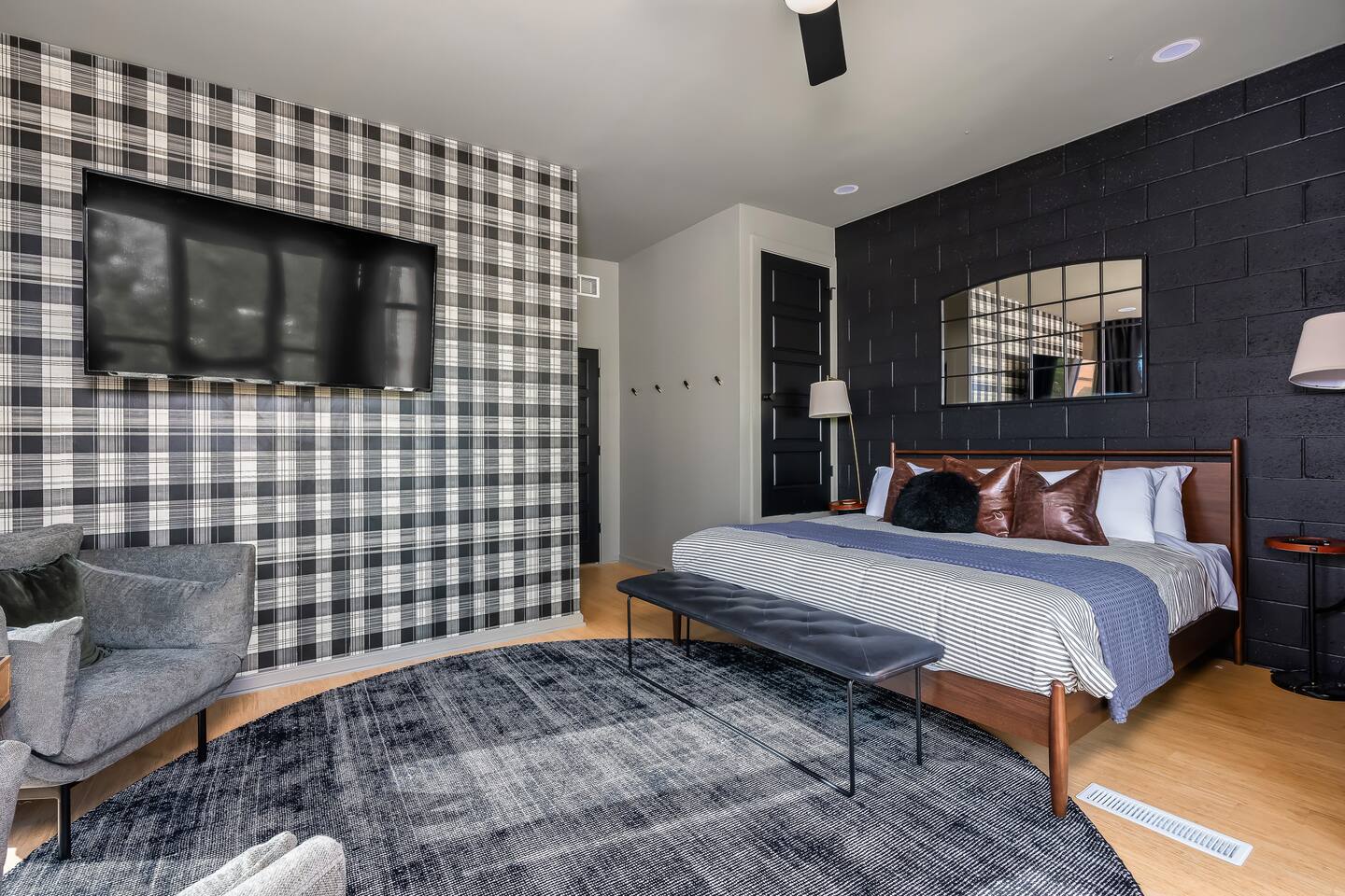 This amazing 3-story, 6-bedroom, 4.5- bath home offers a bold stay spread throughout 3000sqft and amazing amenities. The home can handle large groups and families. We have 3 King, 2 Queen and 2 Full sized beds divided among the 1st and 3rd floors. Each room is elegantly designed with high-end finishes. The 3rd floor bedrooms all feature walls of windows facing west towards downtown. The full bathrooms have been completely reconstructed and feature high end finishes. The rear of the home is large and open. The expansive deck with its outdoor couch and Weber grill overlooks the expansive yard. There you'll find a covered hottub with bench seating around it where those who want to take a dip can talk to those who want to stay dry. Not far away is the fire pit with Adirondack chairs and a table where you can challenge your friends to bourbon-pong. Inside each bedroom has its own TV for privacy. On the 2nd floor the living room has its own 65" tv waiting for you while right next to it is the kitchen where you'll find 4 mounted TVs where you can watch multiple channels. 11 TVs in all throughout the home!
