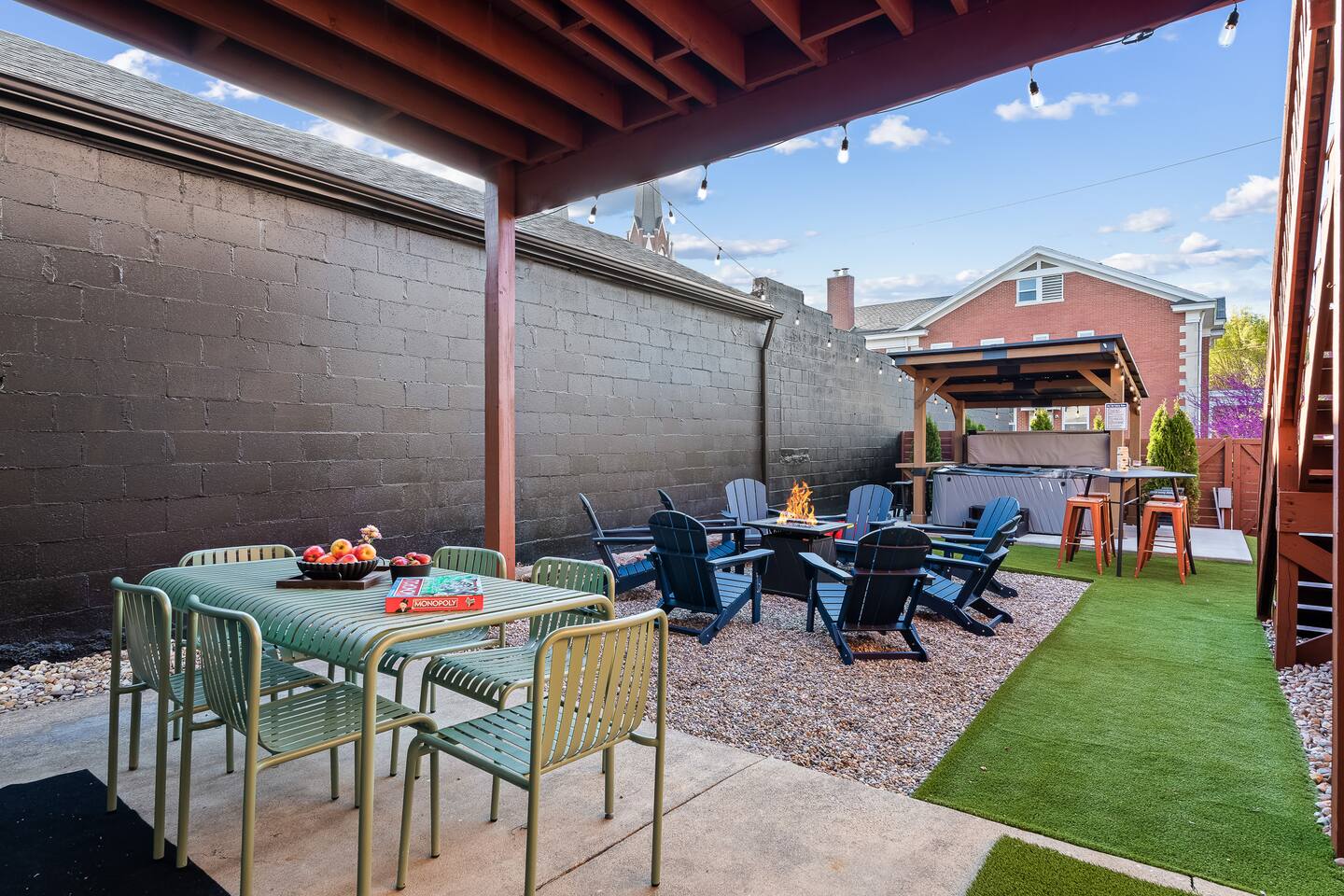 **Drivetimes** 2 min - Lynn Family Stadium 2 min - Copper & Kings Distillery 3 min - Nulu 3 min - Rabbit Hole Distillery 3 min - Angels Envy Distillery 4 min - Bardstown Rd 6 min - KFC YUM! Center 8 min - KY International Convention Center 8 min - Louisville Slugger Museum 9min - Peerless Distillery 13 min - KY Expo Center 14 min - Churchill Downs 16 min - Airport KEY FEATURES: ☀ 6 spacious bedrooms with fun, unique designs; 7 beds ☀ 4 full, modern bathrooms and 1 half bath ☀ Beautiful kitchen with modern appliances & design and 4 TVs ☀ Living room with tons of comfy seating and a 75” TV ☀ Vibrant dining room that opens up to the main living area; great for entertaining! ☀ Elevated deck with comfortable outdoor seating and Weber grill ☀ Unbelievable turf backyard with a hot tub, games and fire pit ☀ Historic neighborhood in the middle of Louisville's entertainment and event centers ☆☆ BEDROOMS ☆☆ These 6 bedrooms will BLOW YOU AWAY! Each have their own smart TV. We have 3 kings, 2 queens and 2 double beds. 1 king and the bedroom w 2 double beds feature en suite full bathrooms. ☆☆ BATHROOMS ☆☆ There are 4 full bathrooms throughout this home. There are 2 private en suite master bathrooms. The remaining 2 full bathrooms are accessible from hallways. All full baths include walk-in showers. There is a half bath located in the home just off the dining area. ☆☆ KITCHEN & DINING ☆☆ The kitchen is bright & open with brand new stainless steel appliances. With lots of counter space, bar top seating, poker table and 4 TVs, it's a great kitchen for entertaining! Just one room over is the bright and welcoming dining room. The dining room seats 12 with an addition 6 seats located at the gaming table. ☆☆ LIVING ROOM ☆☆ As you walk into the home, you're greeted with the big, open living room, which has tons of comfy seating and a luxurious design! It's a great place to relax after tours during the day or before heading out for the night. ☆☆ OUTDOOR SPACE ☆☆ This backyard is everything you could ask for, and more! ☀ Hot tub ☀ Fire pit (gas burning) ☀ BBQ grill ☀ Elevated deck ☀ Outdoor lounge seating There is so much to do here, that all of your friends & family will be thoroughly entertained throughout your entire stay. Book your stay with us today and you will NOT be disappointed. Get ready for a vacation you will never forget! ★☆ Book Now & Let Us Take Care Of You In Louisville! ☆★