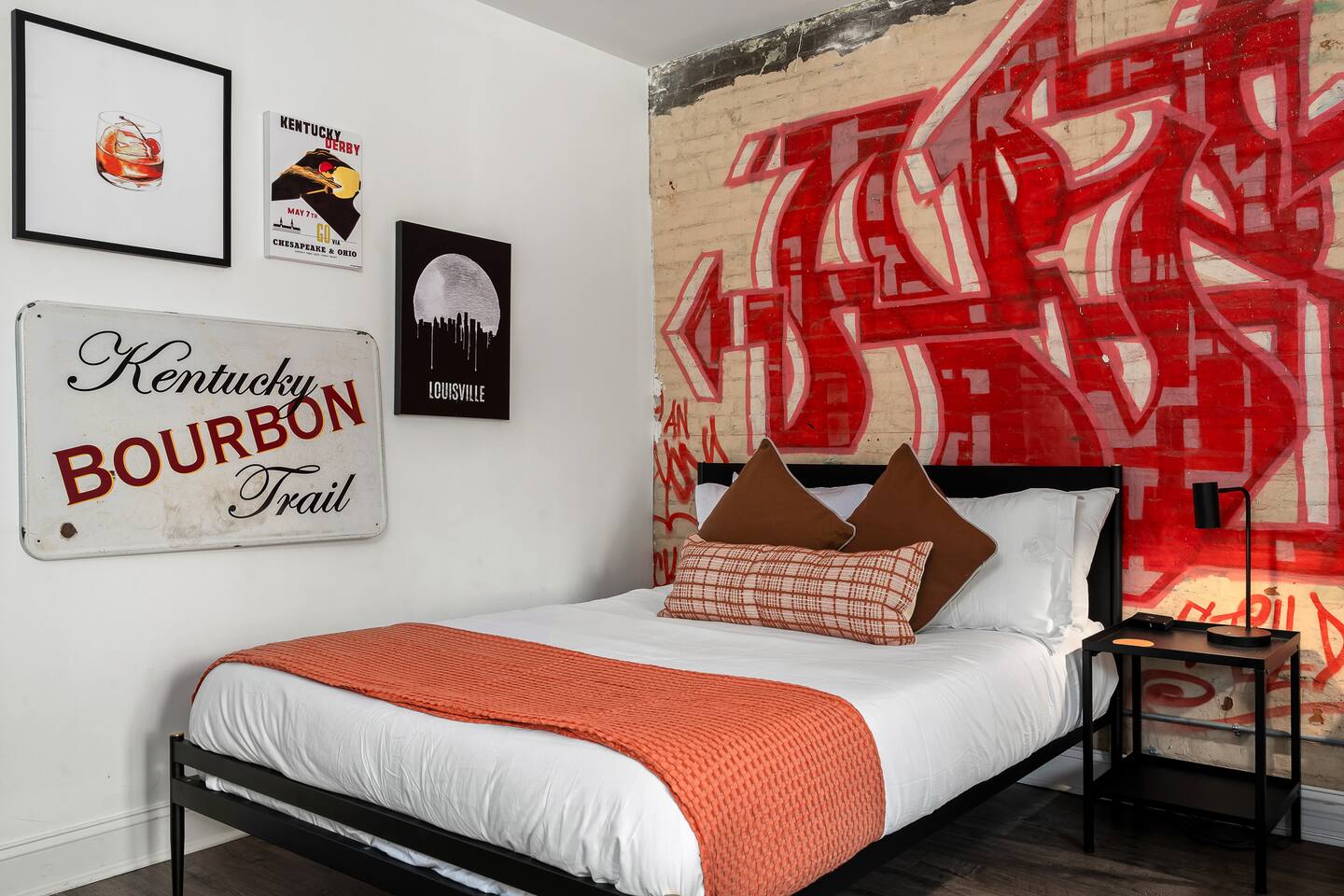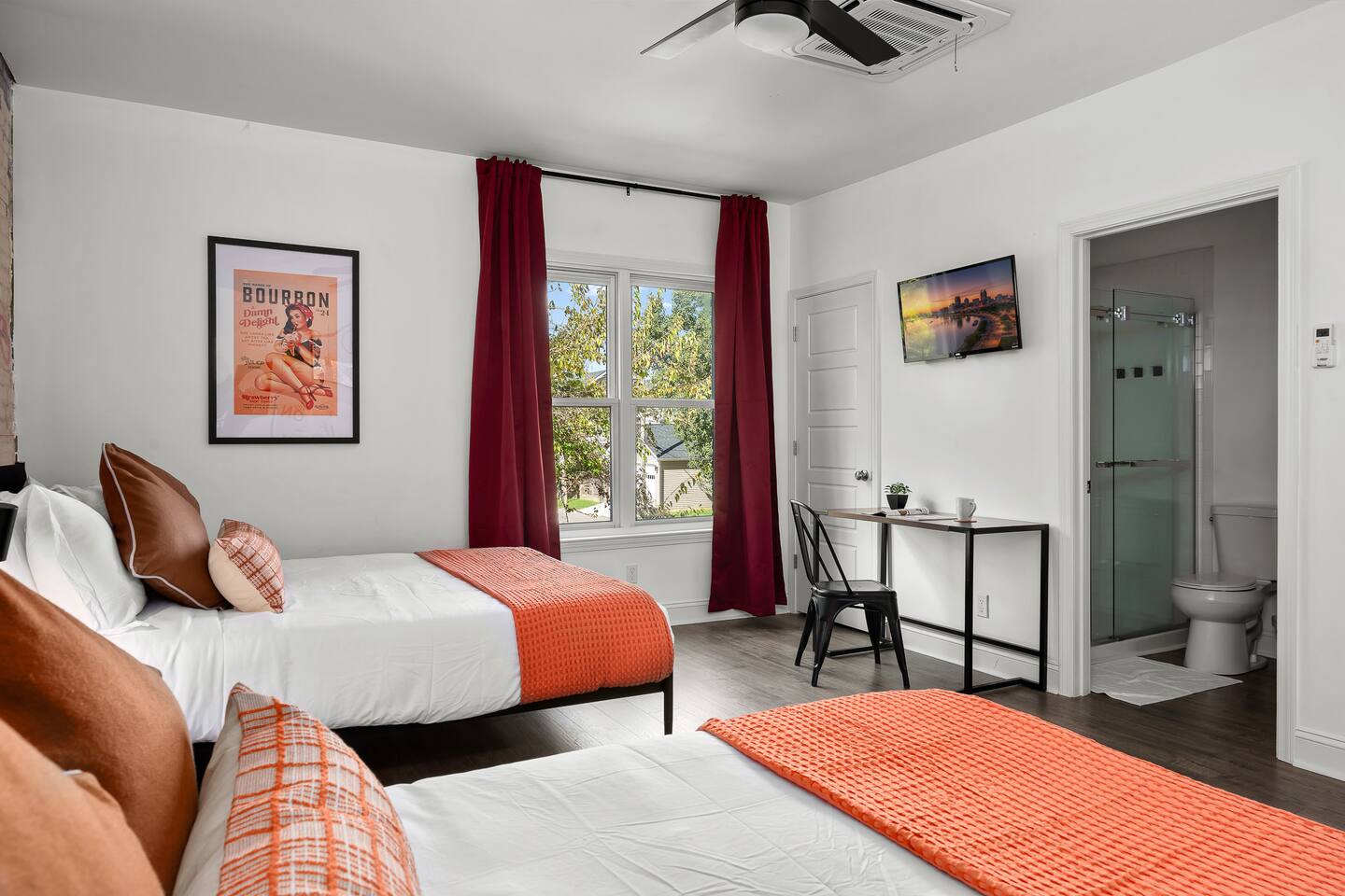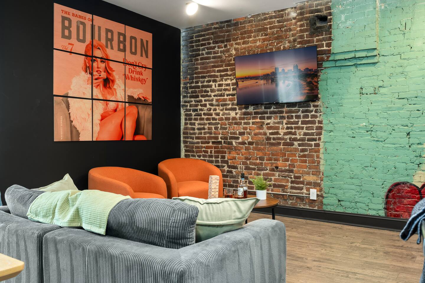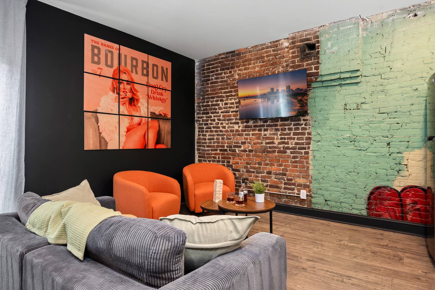 The space **Drivetimes** 0 min - Bardstown Rd/Baxter Ave Corridor 3 min - Rabbit Hole Distillery 4 min - Nulu 5 min - Copper & Kings Distillery 6 min - Angels Envy Distillery 6 min - Lynn Family Stadium 9 min - KY International Convention Center 9 min - KFC YUM! Center 10 min - Peerless Distillery 10 min - KY Expo Center 12 min - Louisville Slugger Museum 13 min - Airport 14 min - Churchill Downs KEY FEATURES: ☀ 2 spacious bedrooms with fun, unique designs; 1 king & 2 queen beds ☀ 2 full, modern bathrooms with 1 of them en suite. ☀ Beautiful kitchen/dining room combo with modern appliances & design ☀ Living room with tons of comfy seating ☀ Unbelievable shared turf courtyard with a mini golf, grills, a picnic table with an umbrella and a large seating areas surrounding the fire pits ☀ Historic neighborhood in the middle of Louisville's entertainment and event centers ☆☆ BEDROOMS ☆☆ These 2 bedrooms will BLOW YOU AWAY! Each have their own smart TV. We have 1 king and 2 queen beds. ☆☆ BATHROOMS ☆☆ There are 2 full bathrooms throughout this home. One of the bathrooms is en suite and one features a shower/tub combo. ☆☆ KITCHEN/LIVING/DINING ☆☆ The kitchen/living/dining combo is bright & open and features a sliding door that overlooks the street below. We have new stainless steel appliances with lots of counter space. It's a great kitchen for entertaining and the dining table seats 6. It's a great place to relax after tours during the day or before heading out for the night. ☆☆ OUTDOOR SPACE ☆☆ This shared courtyard is everything you could ask for, and more! ☀ Two fire pits (gas burning) ☀ Two BBQ grills ☀ Putting green ☀ Picnic table with LED umbrella ☀ Outdoor lounge seating There is so much to do here, that all of your friends & family will be thoroughly entertained throughout your entire stay. Book your stay with us today and you will NOT be disappointed. Get ready for a vacation you will never forget! ★☆ Book Now & Let Us Take Care Of You In Louisville! ☆★