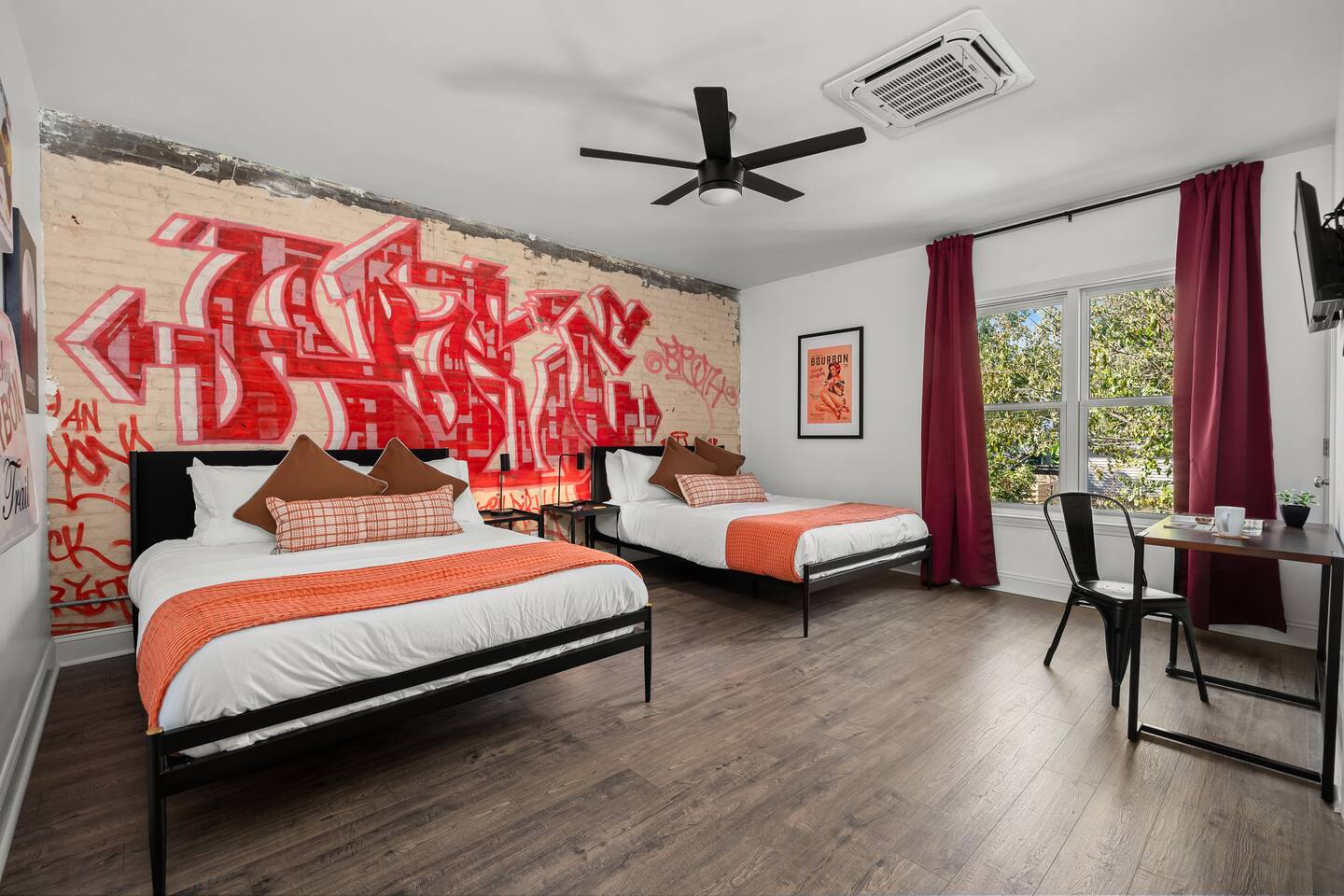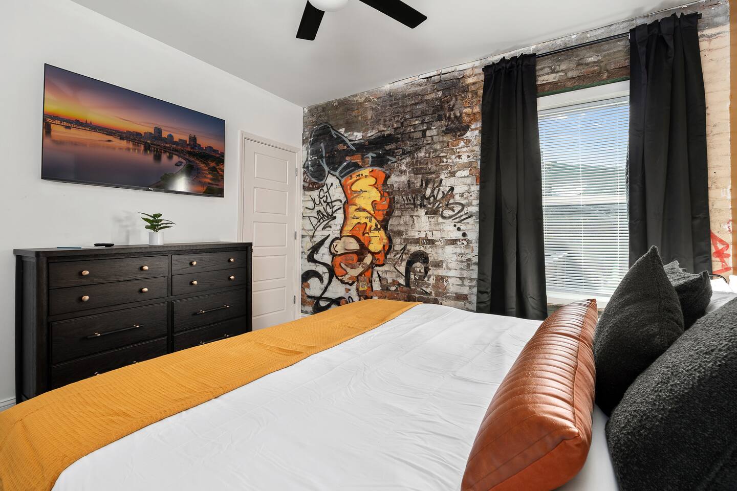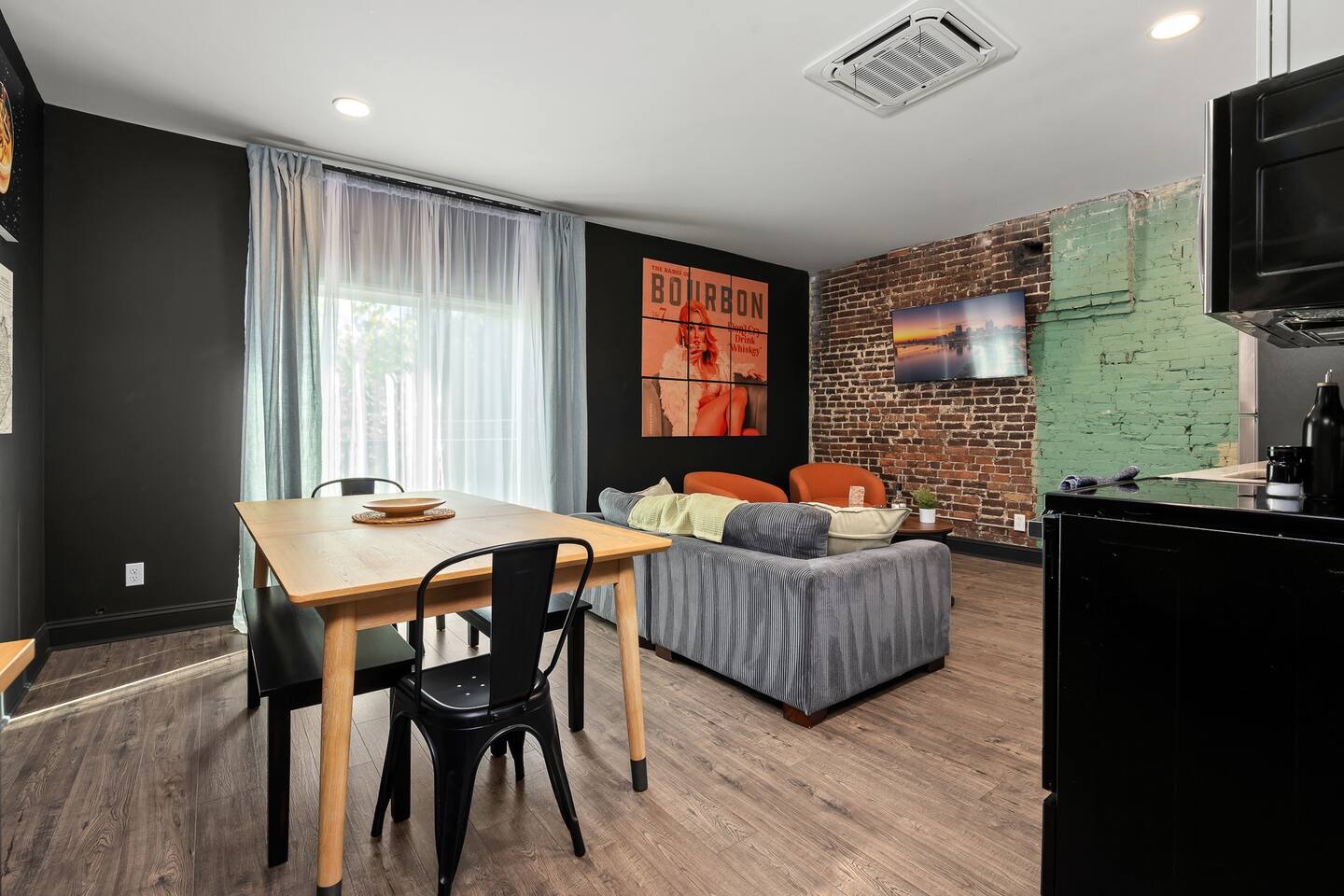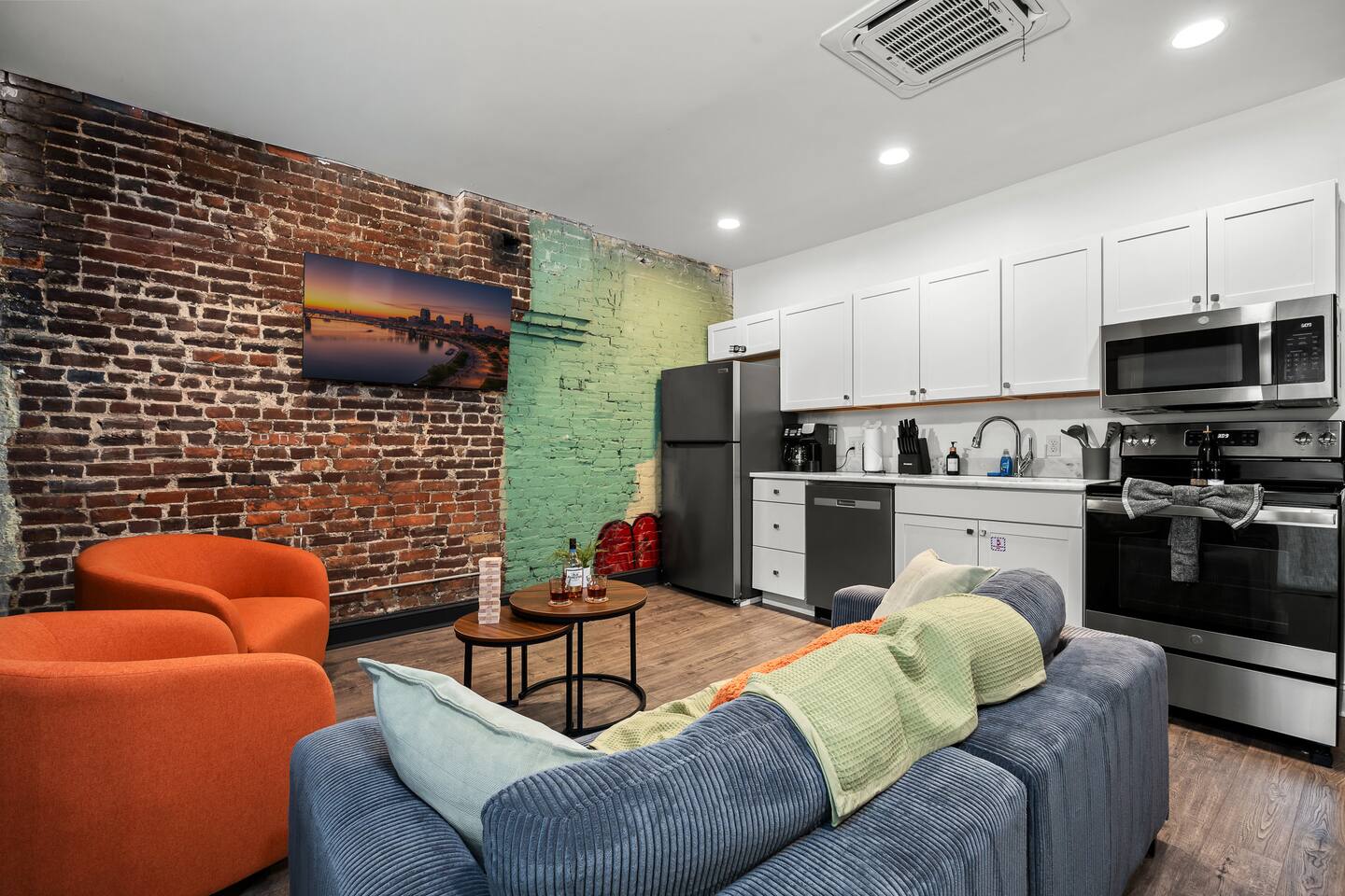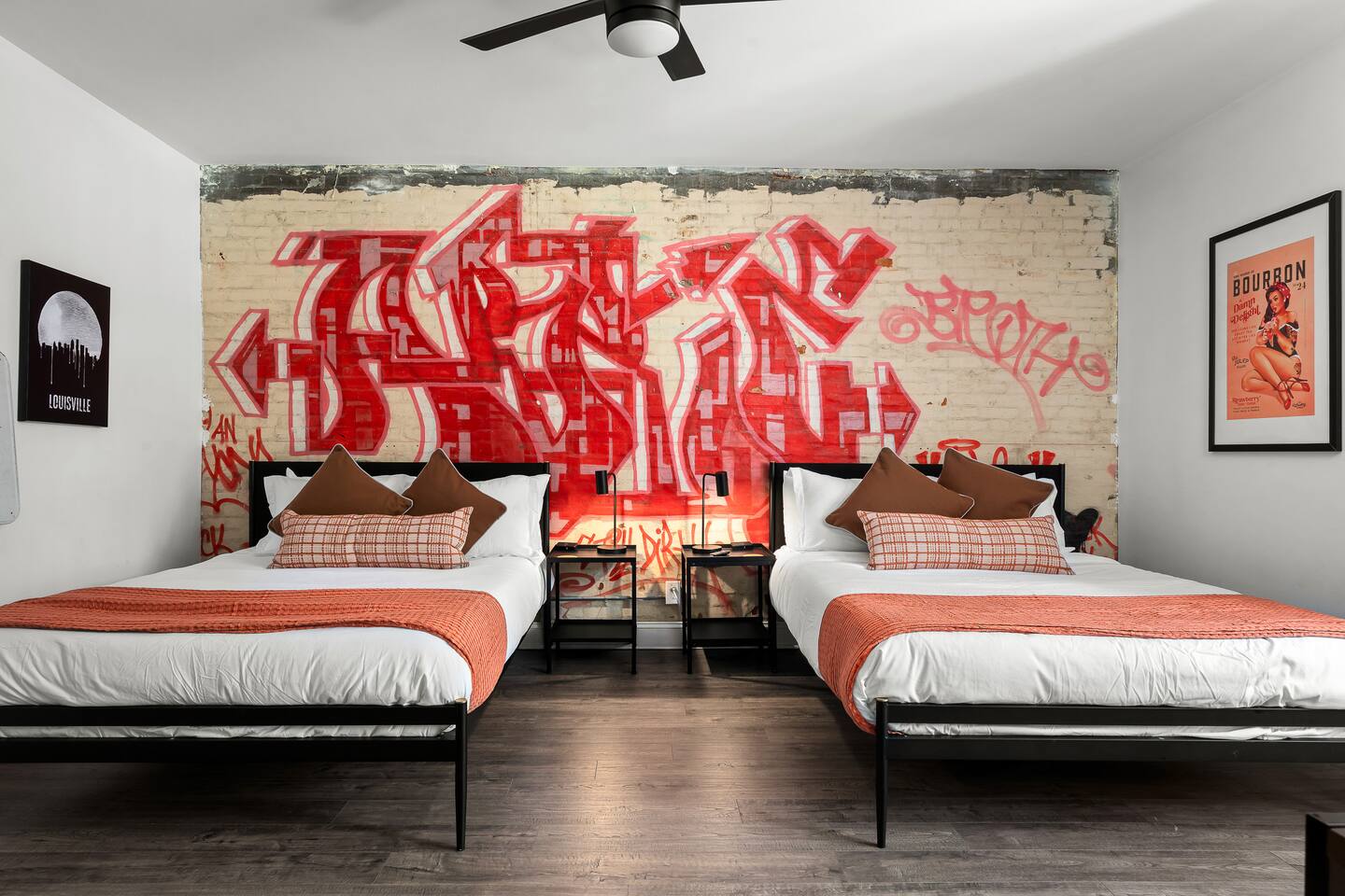 The space **Drivetimes** 0 min - Bardstown Rd/Baxter Ave Corridor 3 min - Rabbit Hole Distillery 4 min - Nulu 5 min - Copper & Kings Distillery 6 min - Angels Envy Distillery 6 min - Lynn Family Stadium 9 min - KY International Convention Center 9 min - KFC YUM! Center 10 min - Peerless Distillery 10 min - KY Expo Center 12 min - Louisville Slugger Museum 13 min - Airport 14 min - Churchill Downs KEY FEATURES: ☀ 2 spacious bedrooms with fun, unique designs; 1 king & 2 queen beds ☀ 2 full, modern bathrooms with 1 of them en suite. ☀ Beautiful kitchen/dining room combo with modern appliances & design ☀ Living room with tons of comfy seating ☀ Unbelievable shared turf courtyard with a mini golf, grills, a picnic table with an umbrella and a large seating areas surrounding the fire pits ☀ Historic neighborhood in the middle of Louisville's entertainment and event centers ☆☆ BEDROOMS ☆☆ These 2 bedrooms will BLOW YOU AWAY! Each have their own smart TV. We have 1 king and 2 queen beds. ☆☆ BATHROOMS ☆☆ There are 2 full bathrooms throughout this home. One of the bathrooms is en suite and one features a shower/tub combo. ☆☆ KITCHEN/LIVING/DINING ☆☆ The kitchen/living/dining combo is bright & open and features a sliding door that overlooks the street below. We have new stainless steel appliances with lots of counter space. It's a great kitchen for entertaining and the dining table seats 6. It's a great place to relax after tours during the day or before heading out for the night. ☆☆ OUTDOOR SPACE ☆☆ This shared courtyard is everything you could ask for, and more! ☀ Two fire pits (gas burning) ☀ Two BBQ grills ☀ Putting green ☀ Picnic table with LED umbrella ☀ Outdoor lounge seating There is so much to do here, that all of your friends & family will be thoroughly entertained throughout your entire stay. Book your stay with us today and you will NOT be disappointed. Get ready for a vacation you will never forget! ★☆ Book Now & Let Us Take Care Of You In Louisville! ☆★