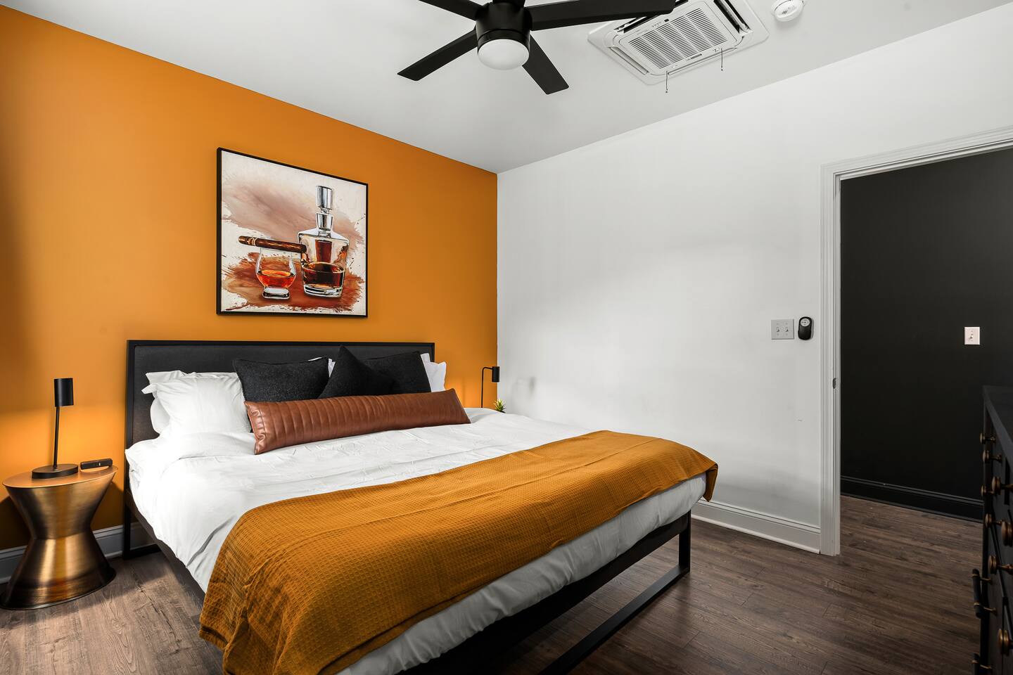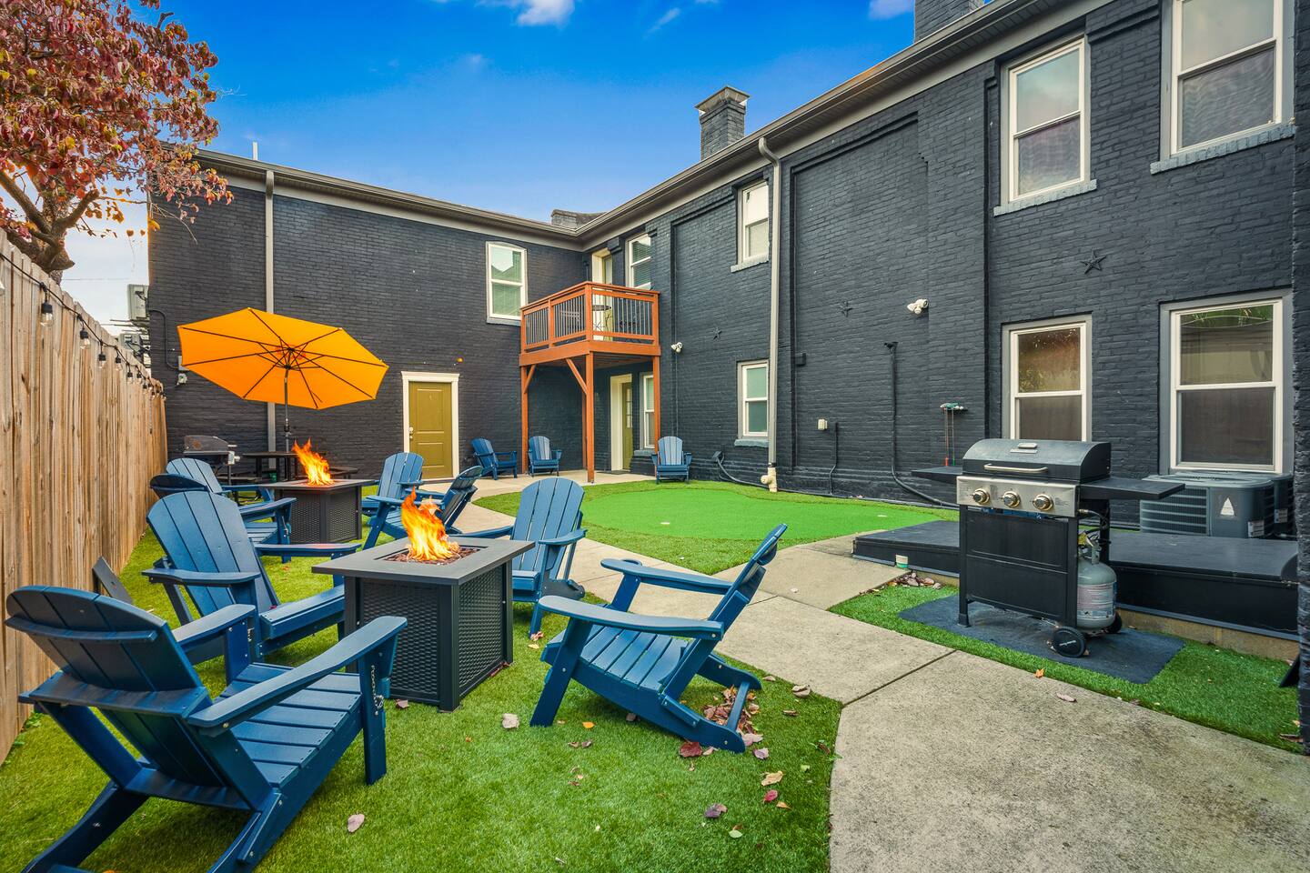 This amazing 2-bedroom, 2-bath, 3-bed home offers a bold stay with amazing amenities. The home can handle large groups and families. We have 1 King and 2 Queen beds divided among the 2-bedrooms. Each room is elegantly designed with high-end finishes. Each bedroom has its own TV for privacy. 3 TVs in all throughout the home! The courtyard is large and open. There is abundant seating around our two gas fire pits and a putting green for those who want to take a swing. If that's not your thing, you can grill and chill sitting at the picnic table featuring a solar-powered umbrella. This unit minutes away from distilleries, Nulu and Downtown and just steps away from the Bardstown Rd/Baxter Ave corridor where you'll find restaurants, shopping and entertainment