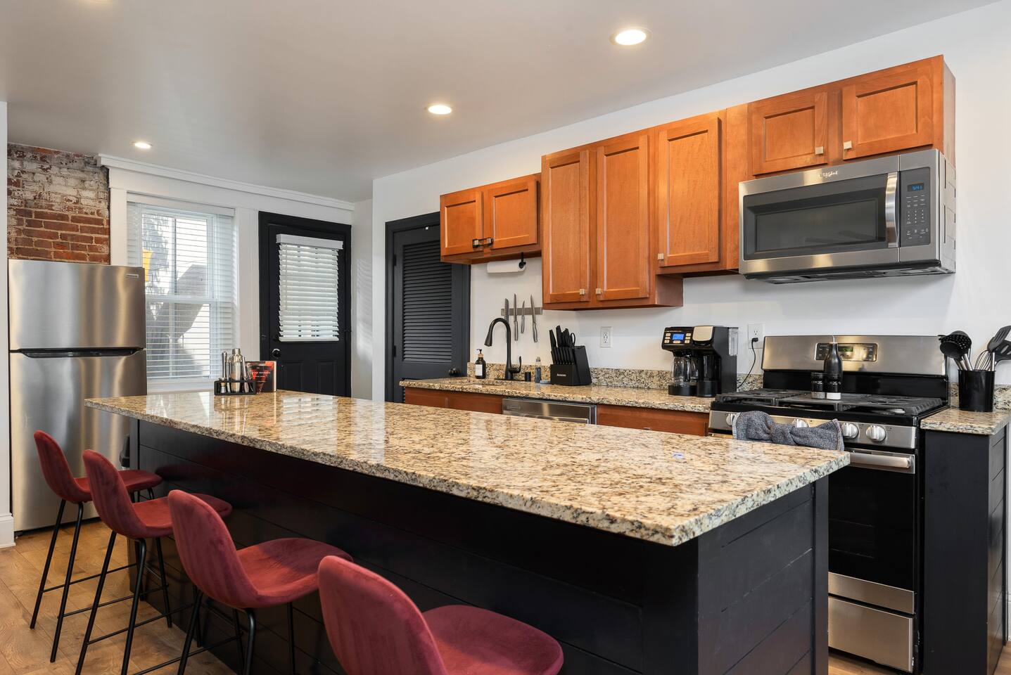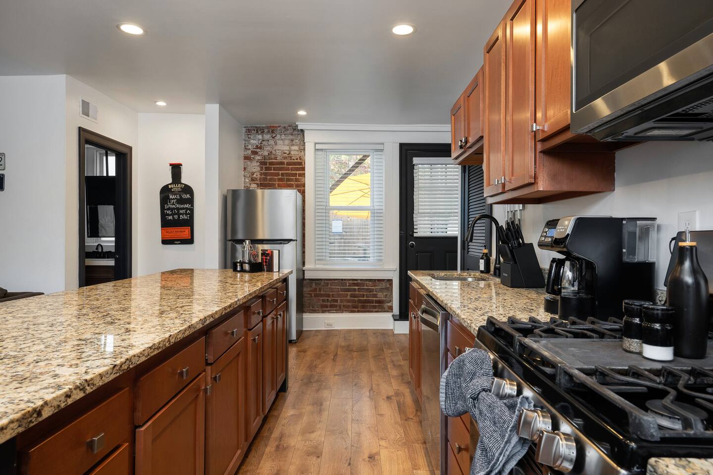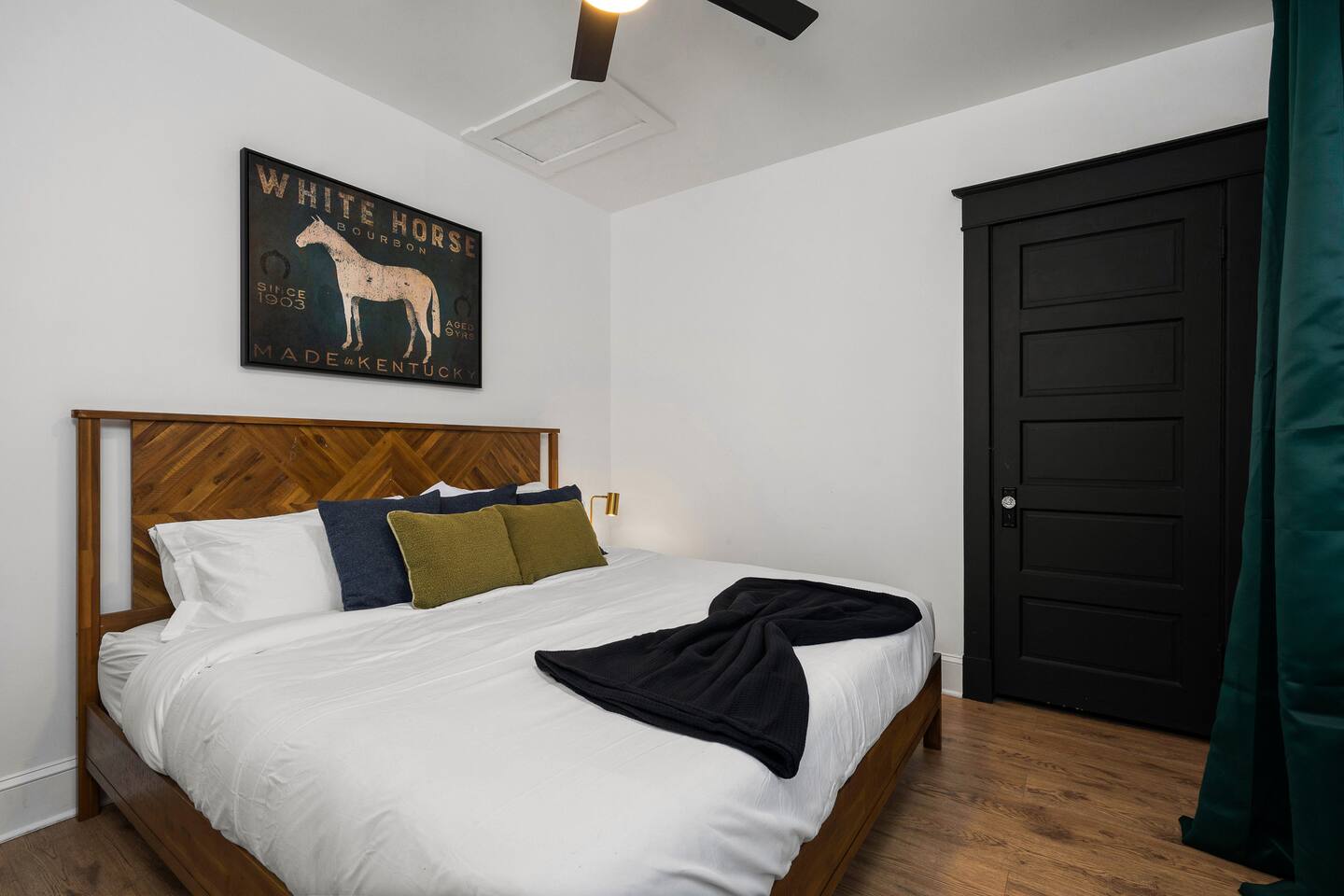 **Drivetimes** 0 min - Bardstown Rd/Baxter Ave Corridor 3 min - Rabbit Hole Distillery 4 min - Nulu 5 min - Copper & Kings Distillery 6 min - Angels Envy Distillery 6 min - Lynn Family Stadium 9 min - KY International Convention Center 9 min - KFC YUM! Center 10 min - Peerless Distillery 10 min - KY Expo Center 12 min - Louisville Slugger Museum 13 min - Airport 14 min - Churchill Downs KEY FEATURES: ☀ 5 bedroom with a fun, unique design; 3 king & 2 queen beds ☀ 2 full, modern bathrooms ☀ Beautiful kitchen/dining room combo with modern appliances & design ☀ 2 living rooms with tons of comfy seating with their own TVs ☀ Unbelievable shared turf courtyard with a mini golf, grills, a picnic table with an umbrella and a large seating areas surrounding the fire pits ☀ Historic neighborhood in the middle of Louisville's entertainment and event centers ☆☆ BEDROOMS ☆☆ This 5 bedroom will BLOW YOU AWAY! There are 3 king and 2 queen beds. ☆☆ BATHROOMS ☆☆ There are 2 full bathrooms in the home with a shower/tub combo. ☆☆ KITCHEN & DINING ☆☆ The kitchen/dining combo is bright & open. We have new stainless steel appliances with lots of counter space. It's a great kitchen for entertaining and the island seats 4. ☆☆ LIVING ROOM ☆☆ We have a big, open living room, which has tons of comfy seating and a luxurious design! Here you'll find the games and wall mounted TV. It's a great place to relax after tours during the day or before heading out for the night. ☆☆ OUTDOOR SPACE ☆☆ This shared courtyard is everything you could ask for, and more! ☀ Two fire pits (gas burning) ☀ Two BBQ grills ☀ Putting green ☀ Picnic table with LED umbrella ☀ Outdoor lounge seating There is so much to do here, that all of your friends & family will be thoroughly entertained throughout your entire stay. Book your stay with us today and you will NOT be disappointed. Get ready for a vacation you will never forget! ★☆ Book Now & Let Us Take Care Of You In Louisville! ☆★