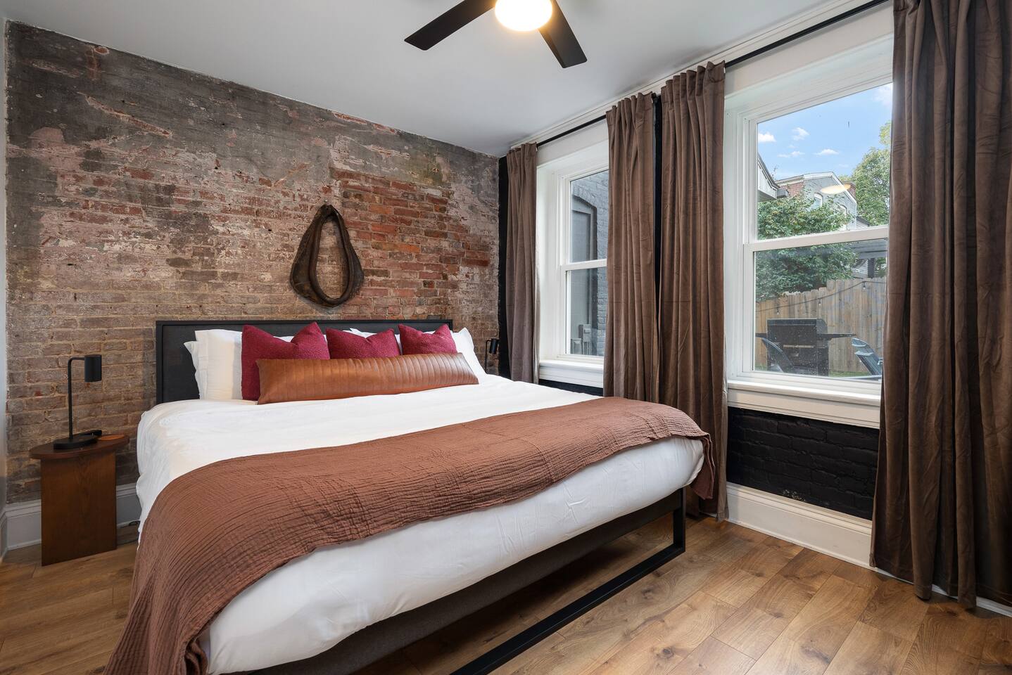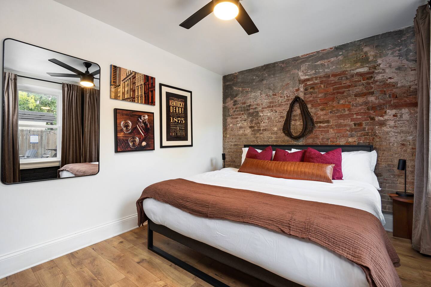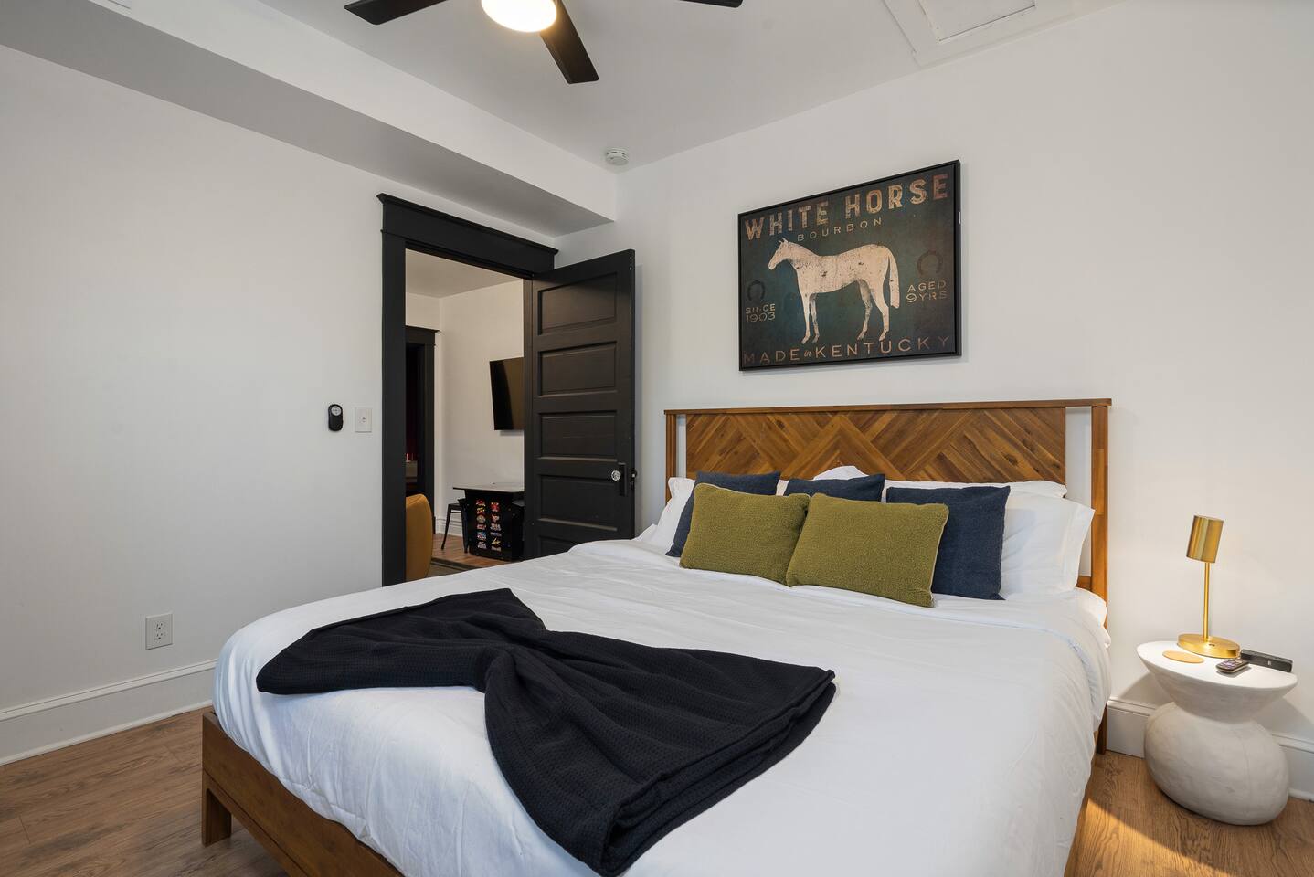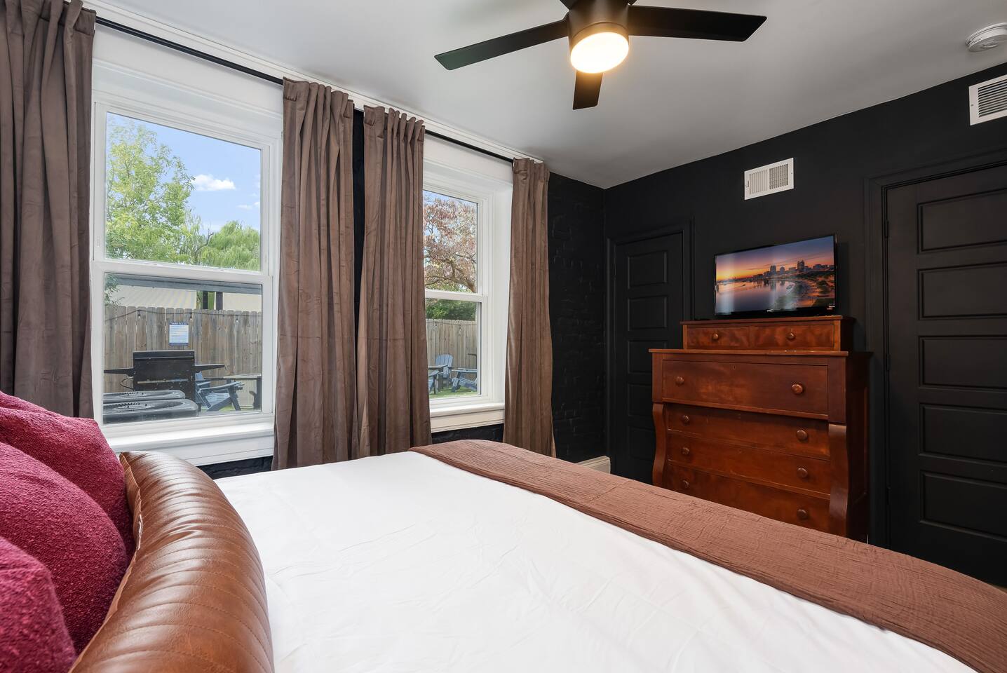 This amazing 5-bedroom, 2-bath, 5-bed home offers a bold stay with amazing amenities. We have 3 King and 2 Queen beds. Each room is elegantly designed with high-end finishes. There 2 living spaces: one located on the 1st floor and the other on the 2nd floor. The shared courtyard is large and open. There is abundant seating around our two gas fire pits and a putting green for those who want to take a swing. If that's not your thing, you can grill and chill sitting at the picnic table featuring a solar-powered umbrella. This unit minutes away from distilleries, Nulu and Downtown and just steps away from the Bardstown Rd/Baxter Ave corridor where you'll find restaurants, shopping and entertainment