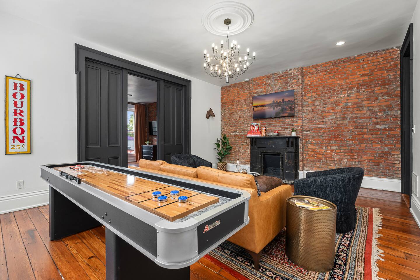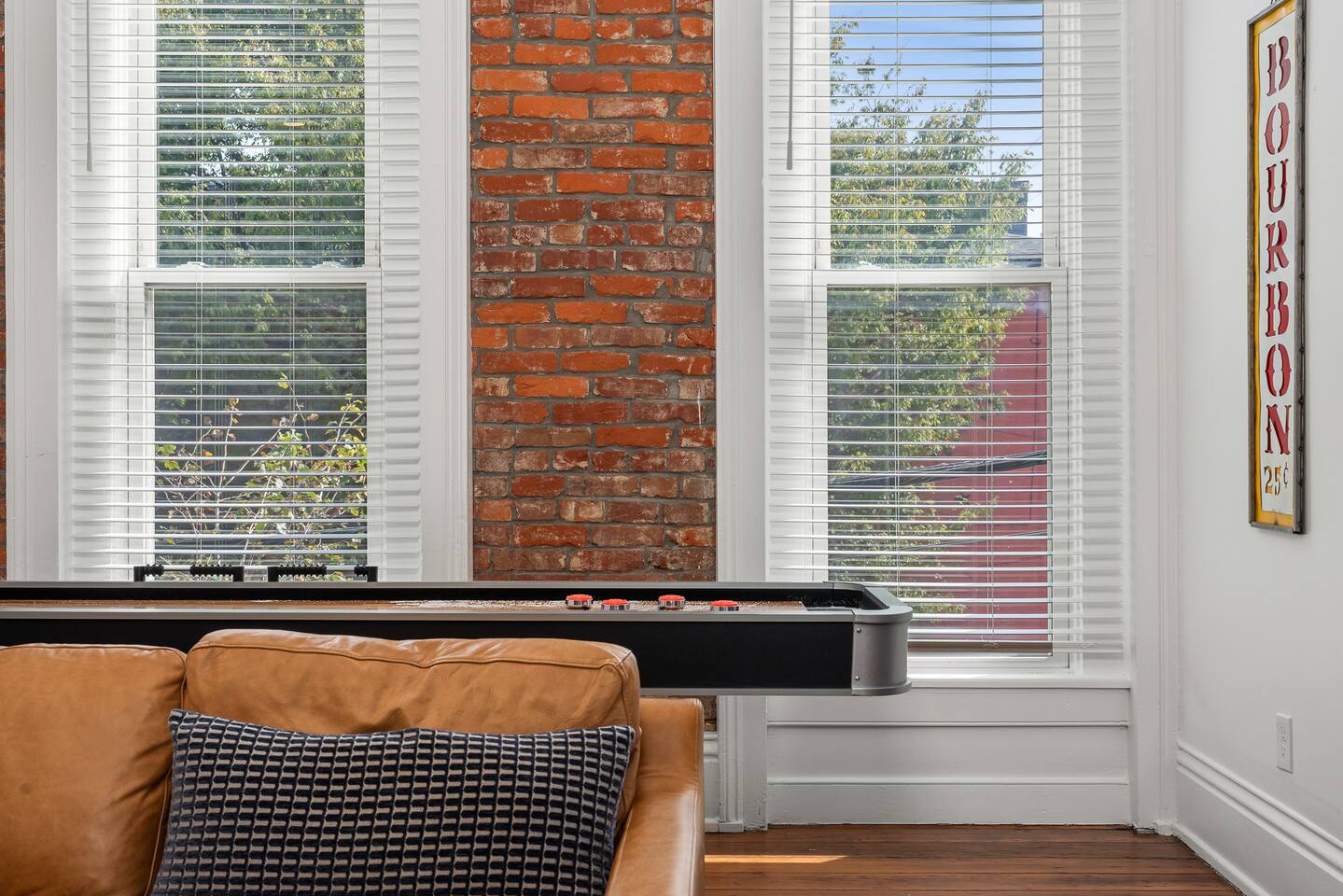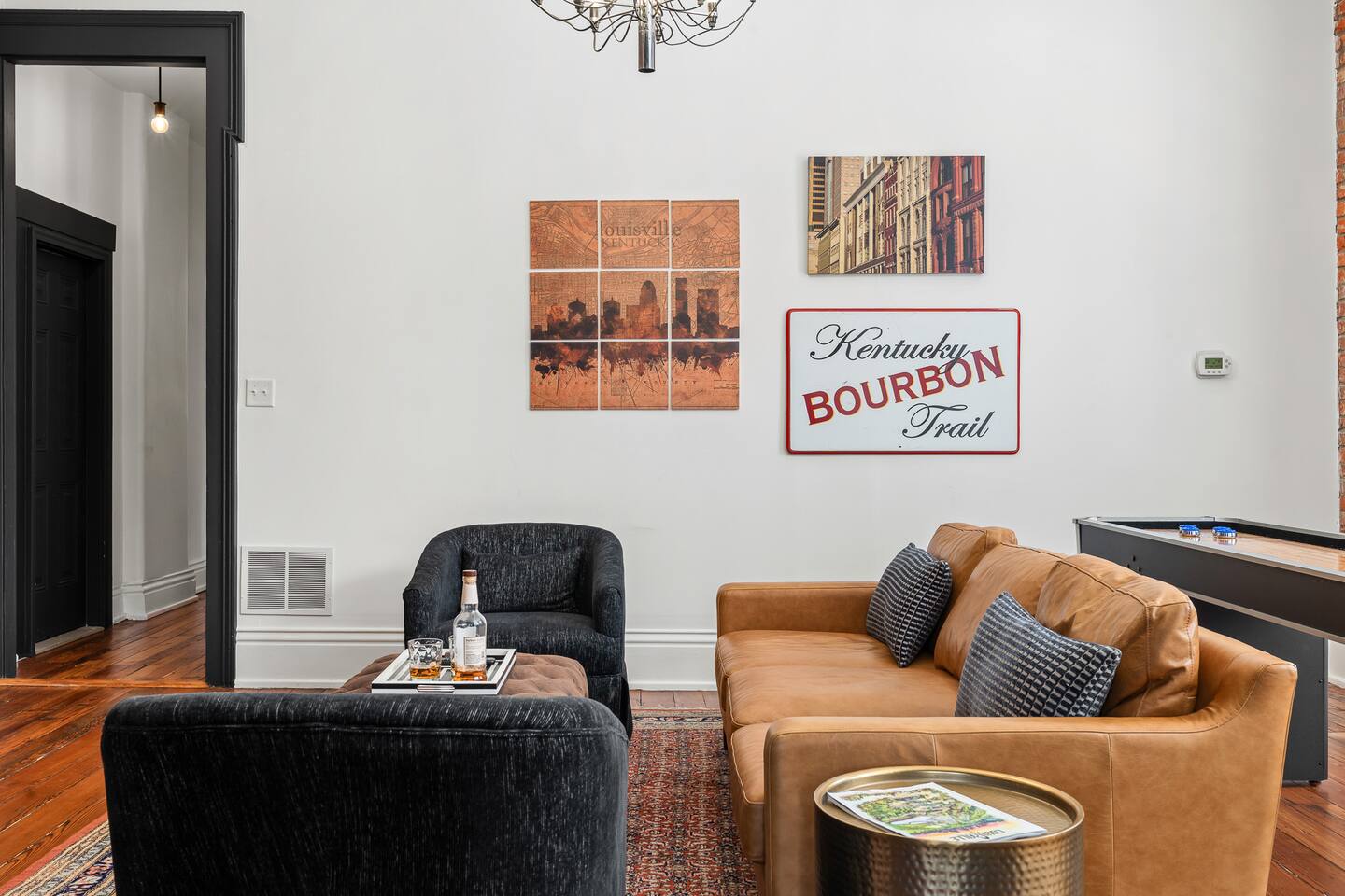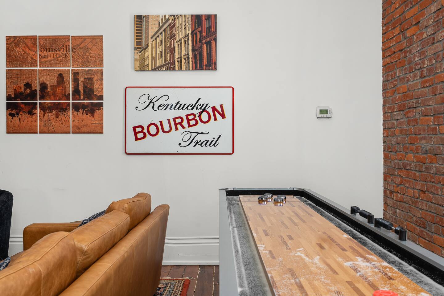 The space **Drivetimes** 0 min - Bardstown Rd/Baxter Ave 3 min - Rabbit Hole Distillery 4 min - Nulu 5 min - Copper & Kings Distillery 6 min - Angels Envy Distillery 6 min - Lynn Family Stadium 9 min - KY International Convention Center 9 min - KFC YUM! Center 10 min - Peerless Distillery 10 min - KY Expo Center 12 min - Louisville Slugger Museum 13 min - Airport 14 min - Churchill Downs KEY FEATURES: ☀ 3 spacious bedrooms with fun, unique designs; 3 kings beds! ☀ 2 full, modern bathrooms with 1 of them en suite. ☀ Beautiful new kitchen/dining room combo with modern appliances & design ☀ Living room with tons of comfy seating and shuffle board table ☀ Unbelievable shared turf courtyard with a mini golf, grills, a picnic table with an umbrella and a large seating areas surrounding the fire pits ☀ Historic neighborhood in the middle of Louisville's entertainment and event centers ☆☆ BEDROOMS ☆☆ These 3 bedrooms will BLOW YOU AWAY! Each have their own smart TV. We have 3 king beds. ☆☆ BATHROOMS ☆☆ There are 2 full bathrooms throughout this home. One of the bathrooms is en suite! ☆☆ KITCHEN/DINING ☆☆ The kitchen/dining combo is bright & open. We have new stainless steel appliances with lots of counter space. It's a great kitchen for entertaining and the dining table seats 6+ easily. It's a great place to relax after tours during the day or before heading out for the night. ☆☆ OUTDOOR SPACE ☆☆ This shared courtyard is everything you could ask for, and more! ☀ Two fire pits (gas burning) ☀ Two BBQ grills ☀ Putting green ☀ Picnic table with LED umbrella ☀ Outdoor lounge seating There is so much to do here, that all of your friends & family will be thoroughly entertained throughout your entire stay. Book your stay with us today and you will NOT be disappointed. Get ready for a vacation you will never forget! ★☆ Book Now & Let Us Take Care Of You In Louisville! ☆★