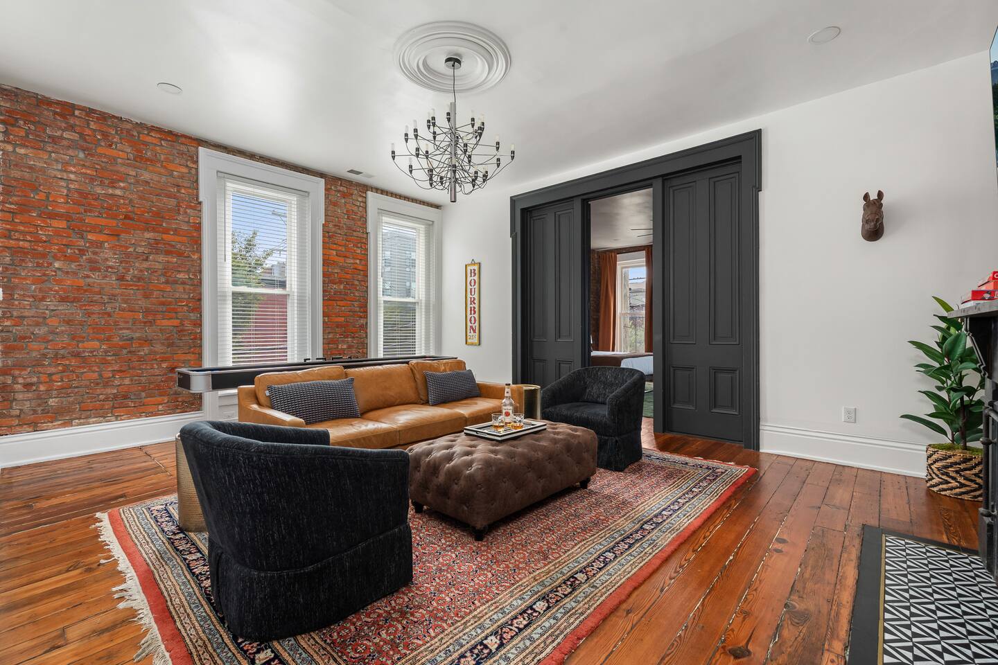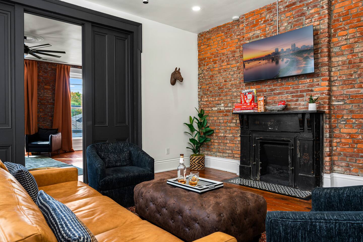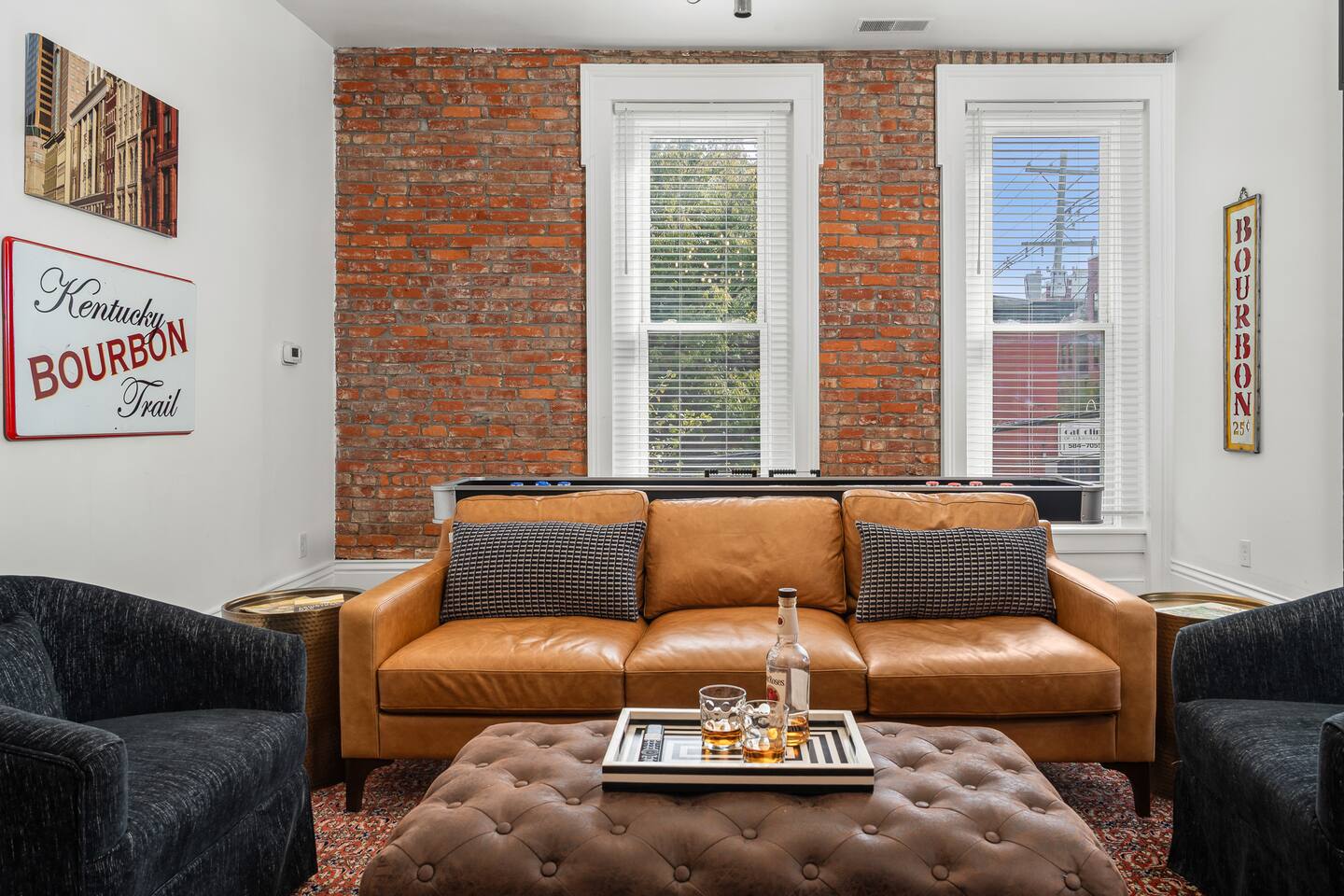 This amazing 3-bedroom, 2-bath home offers a bold stay with amazing amenities. The home can handle large groups and families. We have 2 King and 2 Queen beds among 3-bedrooms. Each room is elegantly designed with high-end finishes. Each bedroom has its own TV for privacy. 4 TVs in all throughout the home! The courtyard is large and open. There is abundant seating around our two gas fire pits and a putting green for those who want to take a swing. If that's not your thing, you can grill and chill sitting at the picnic table featuring a solar-powered umbrella. This unit minutes away from distilleries, Nulu and Downtown and just steps away from the Bardstown Rd/Baxter Ave corridor where you'll find restaurants, shopping and entertainment