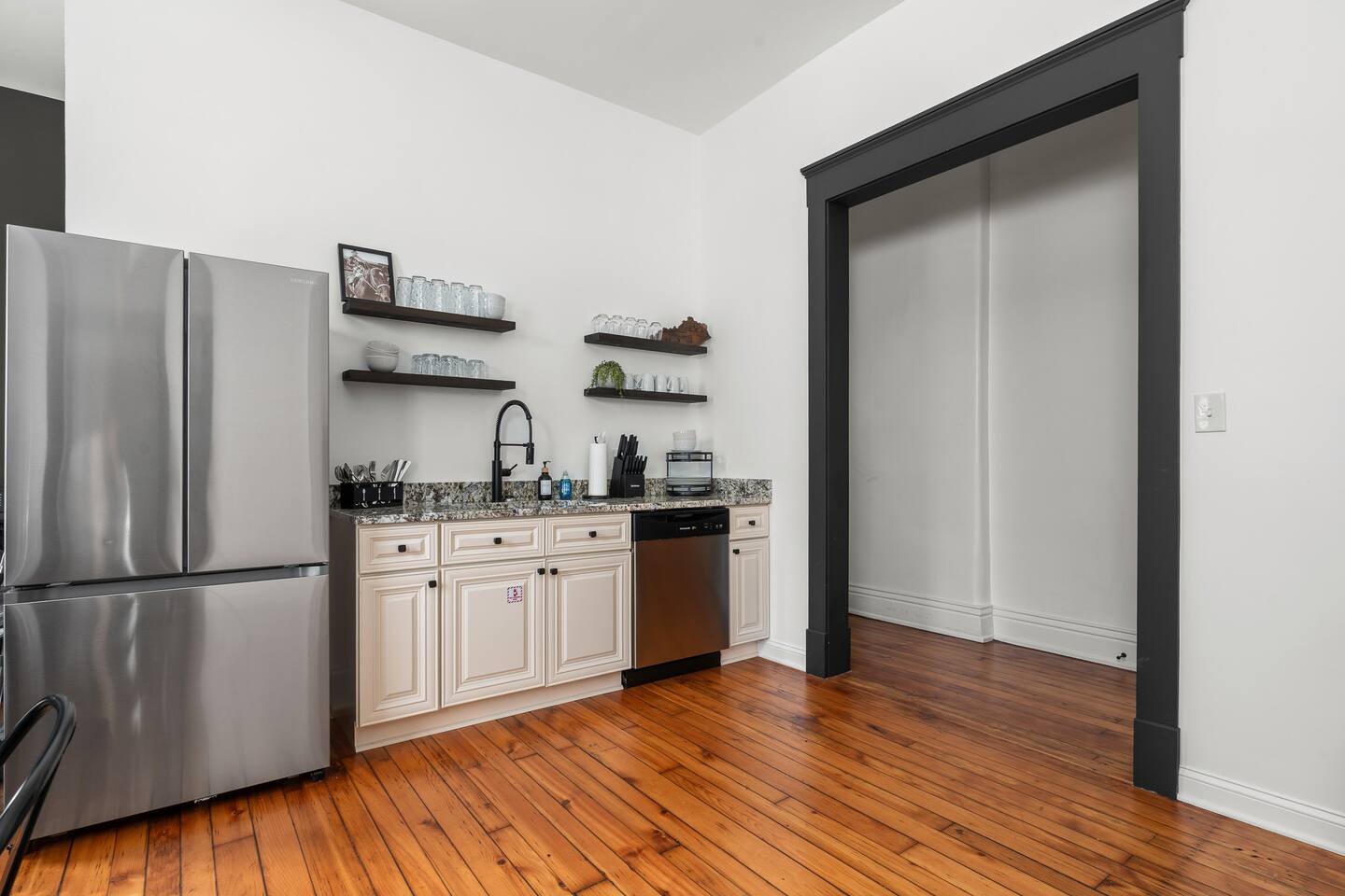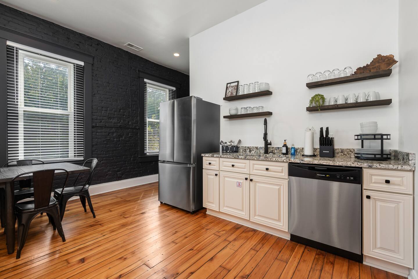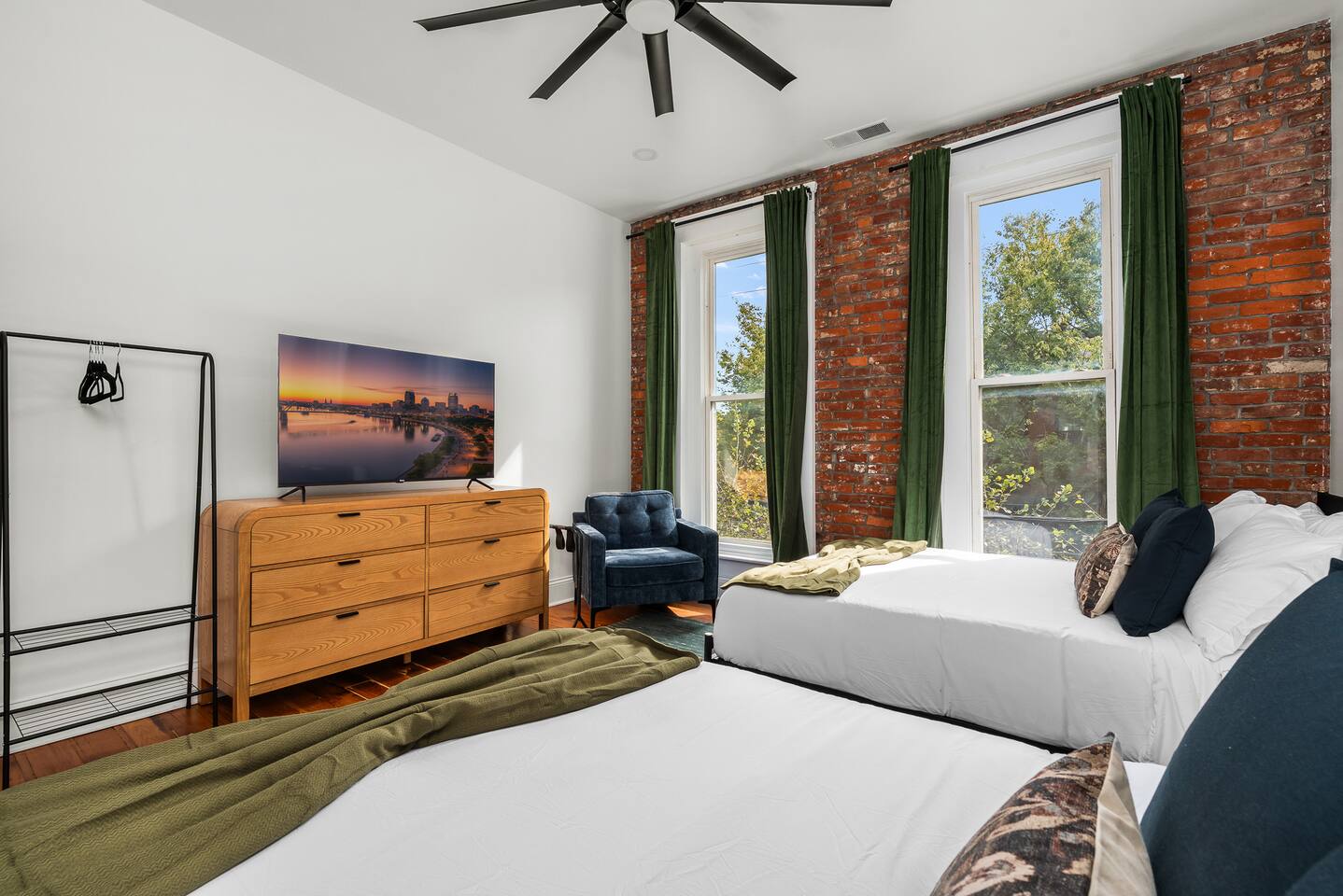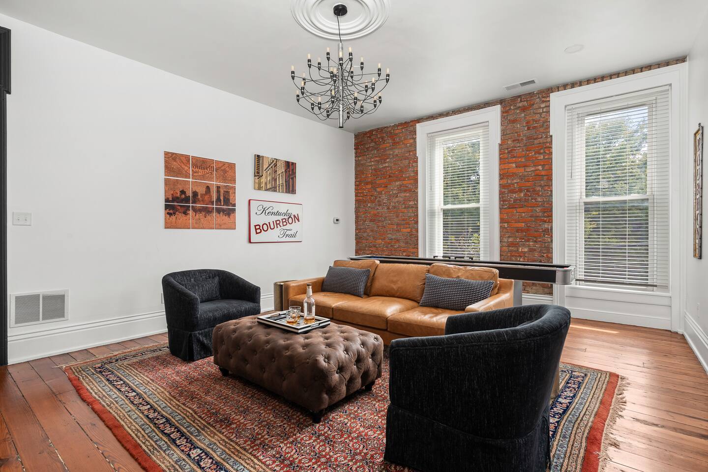 This amazing 3-bedroom, 2-bath home offers a bold stay with amazing amenities. The home can handle large groups and families. We have 2 King and 2 Queen beds among 3-bedrooms. Each room is elegantly designed with high-end finishes. Each bedroom has its own TV for privacy. 4 TVs in all throughout the home! The courtyard is large and open. There is abundant seating around our two gas fire pits and a putting green for those who want to take a swing. If that's not your thing, you can grill and chill sitting at the picnic table featuring a solar-powered umbrella. This unit minutes away from distilleries, Nulu and Downtown and just steps away from the Bardstown Rd/Baxter Ave corridor where you'll find restaurants, shopping and entertainment